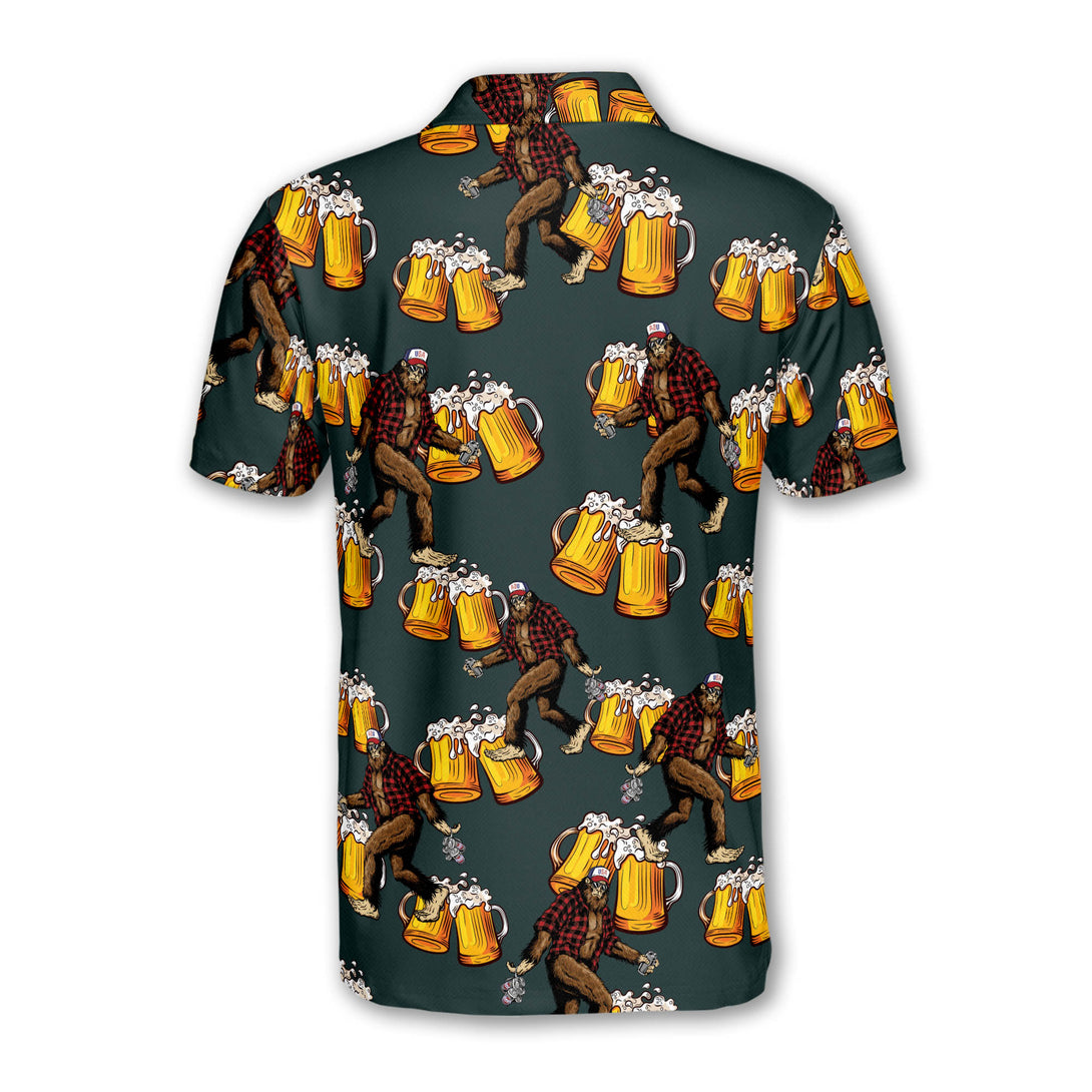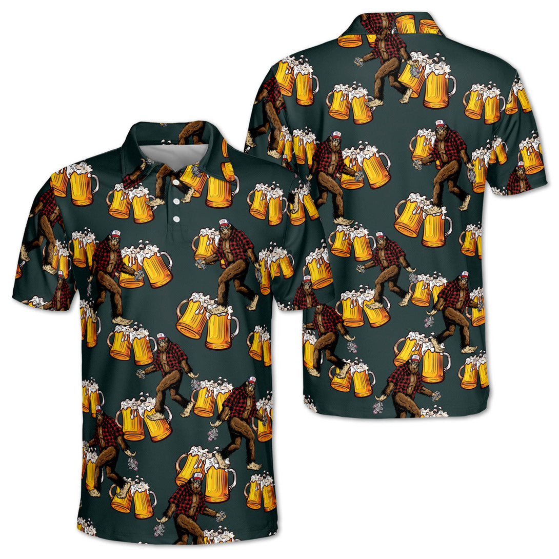 Beer Bigfoot Mens Green Golf Polo Shirts, Beer Golf Shirts GZ0153