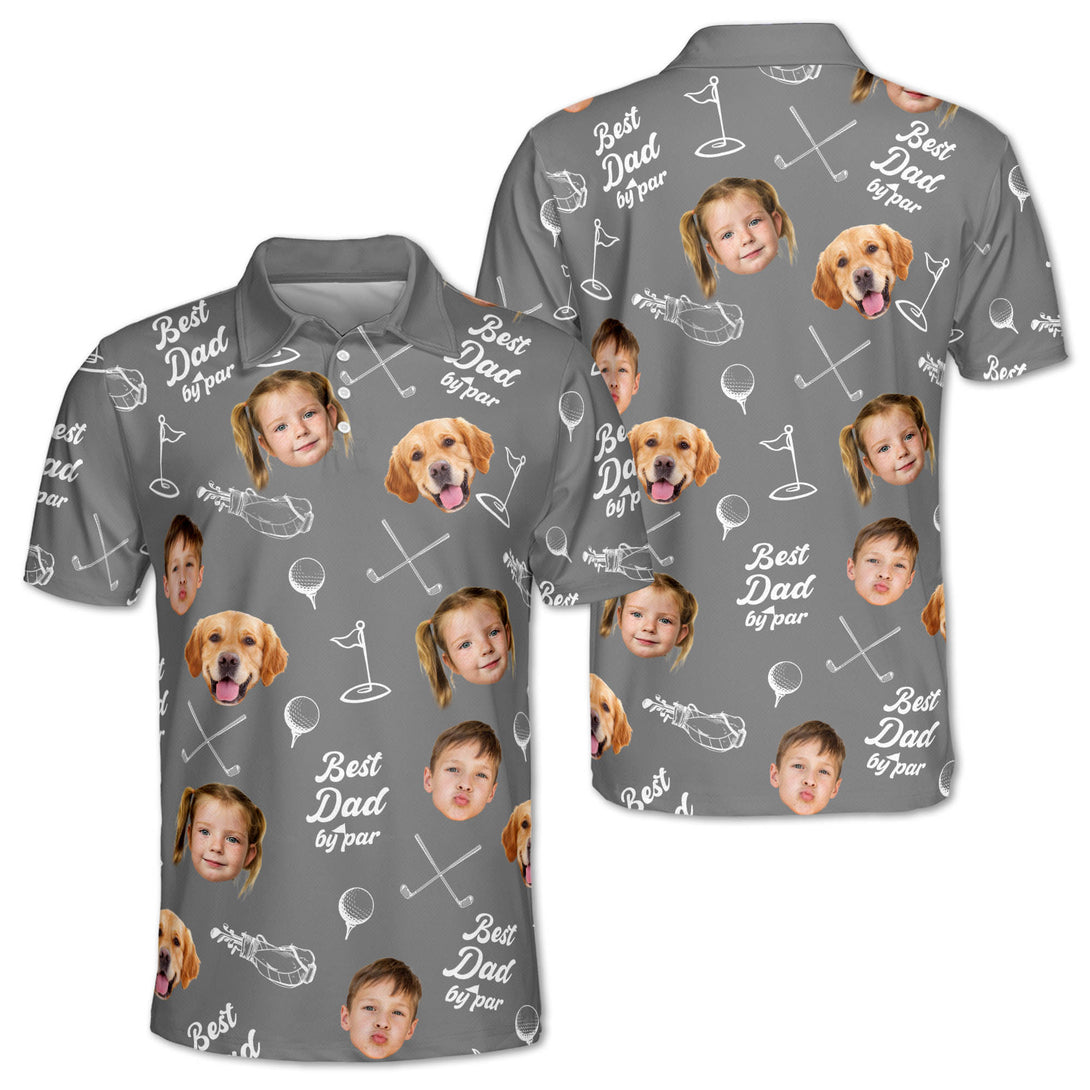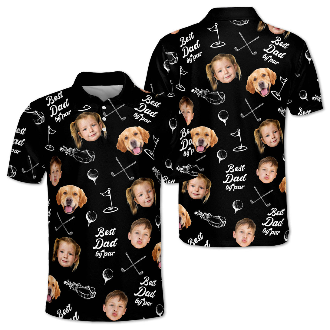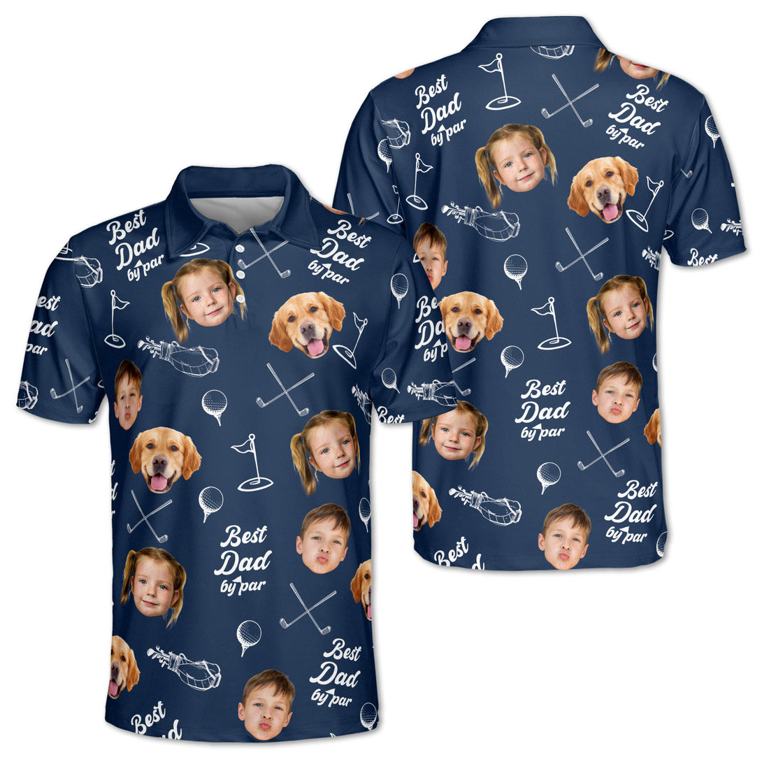 Best Dad By Par Custom Face Golf Polo Shirts For Men, Custom Face Father Day Fun Golf Shirts Mens GE0071