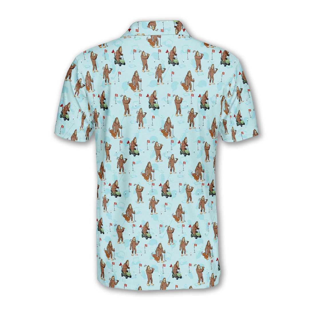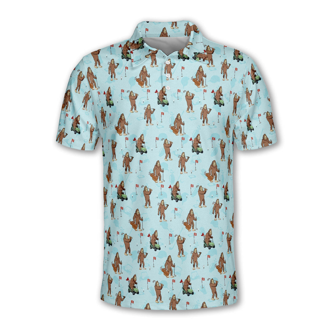 Bigfoot Sasquatch Mens Light Blue Golf Polo Shirt, Bigfoot Golf Shirt Mens GZ0108