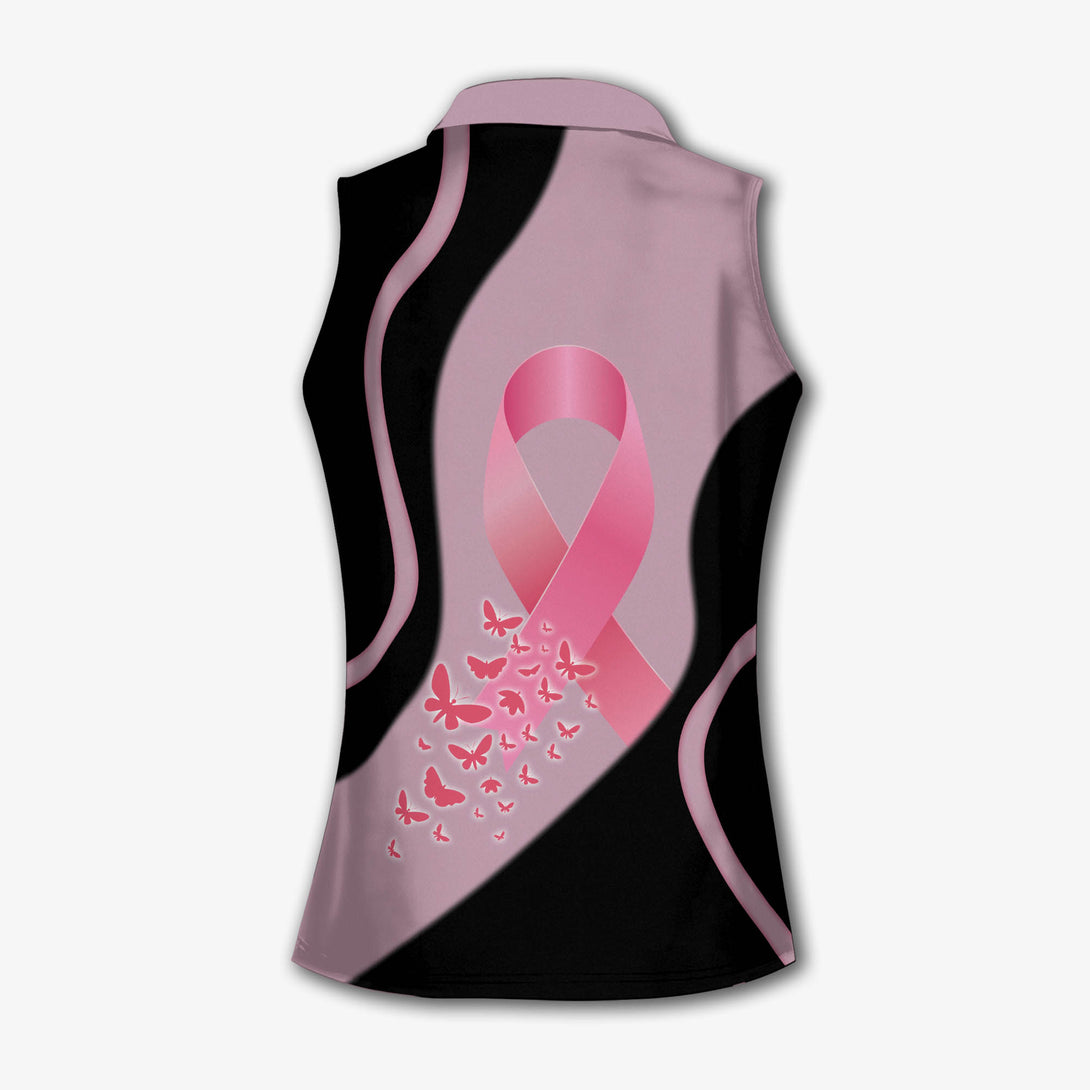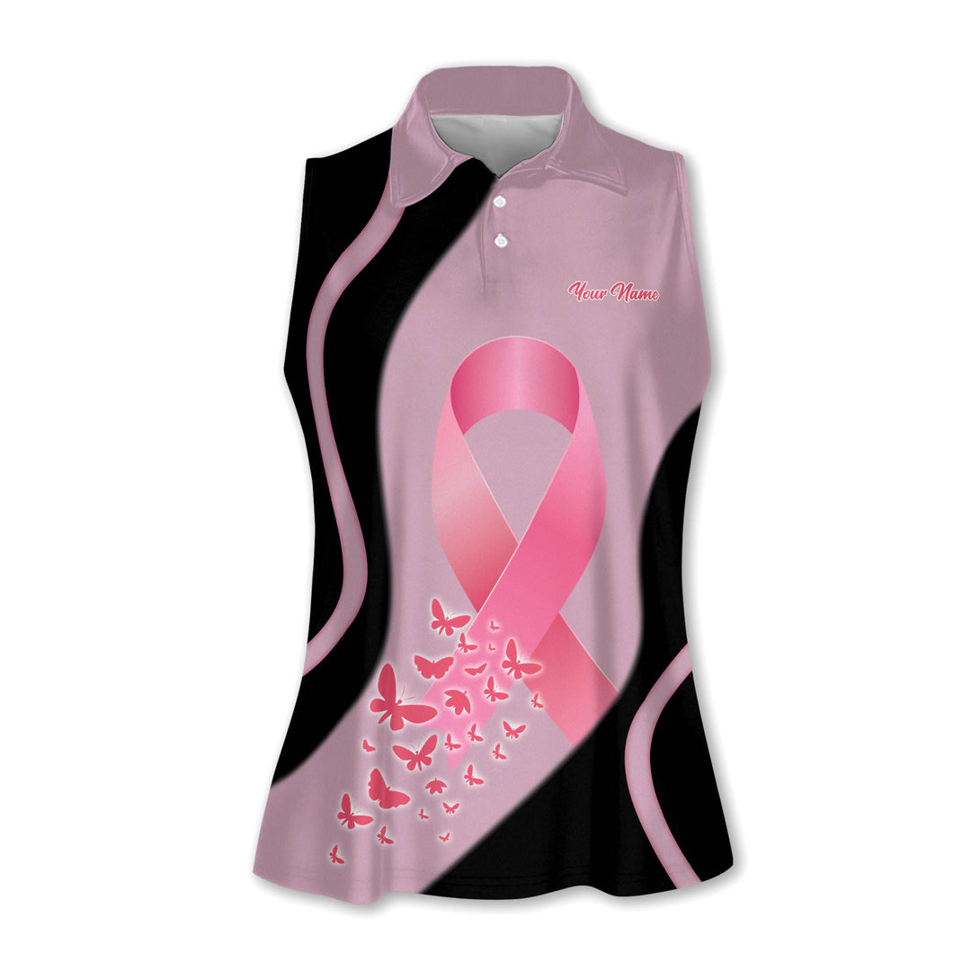 Custom Pink Ribbon Women's Sleeveless Golf Shirts, Custom Breast Cancer Golf Shirt GY3129