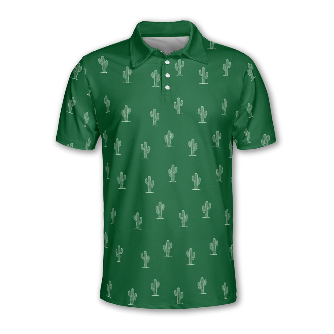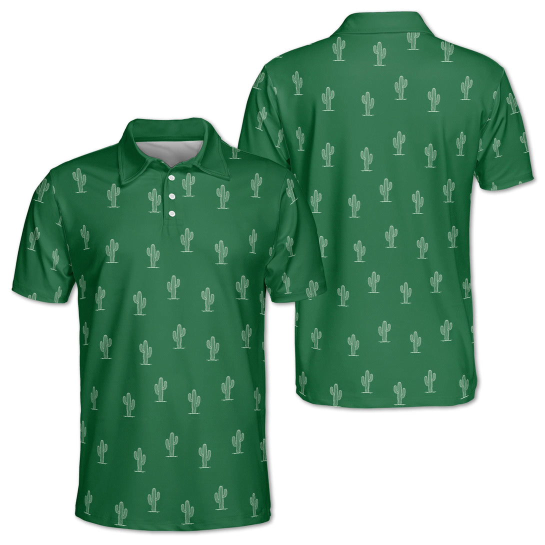 Cactus Mens Green Golf Polo Shirts, Cactus Golf Shirts For Men GZ0144