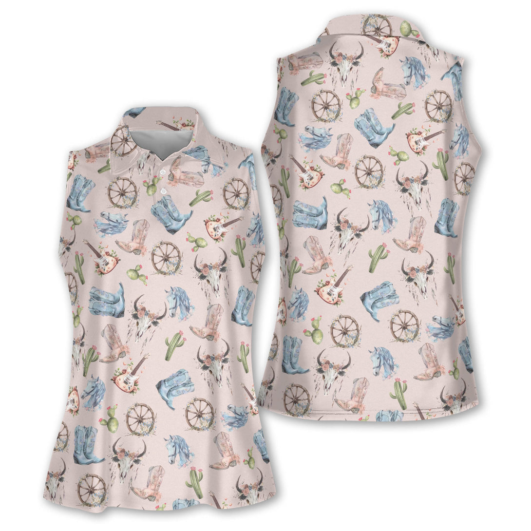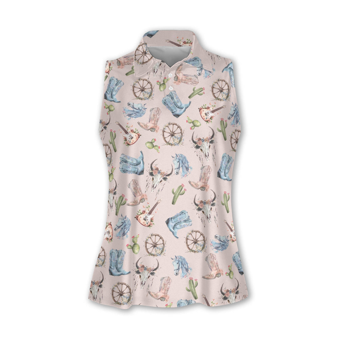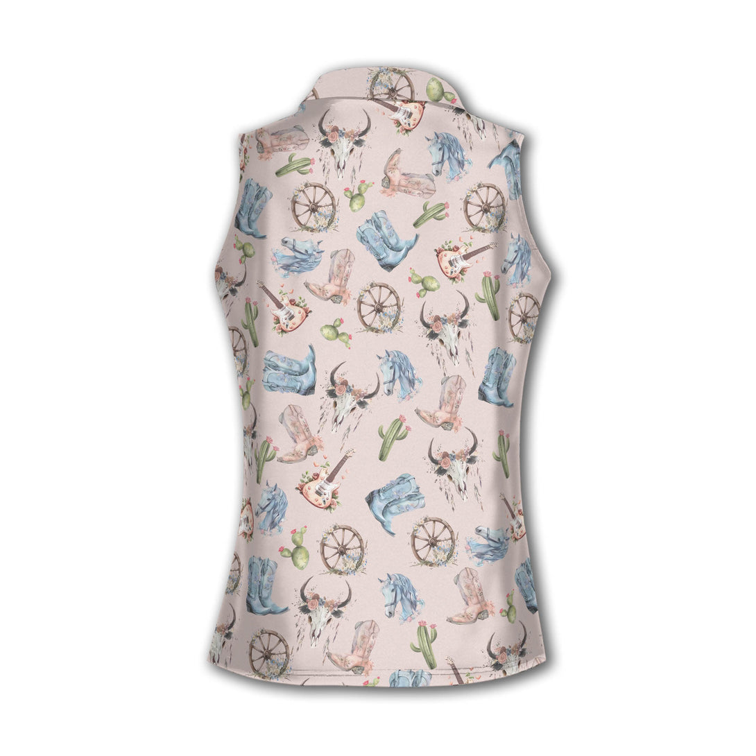 Cowgirl Pink Golf Sleeveless Shirts, Womens Western Golf Shirt GE0094