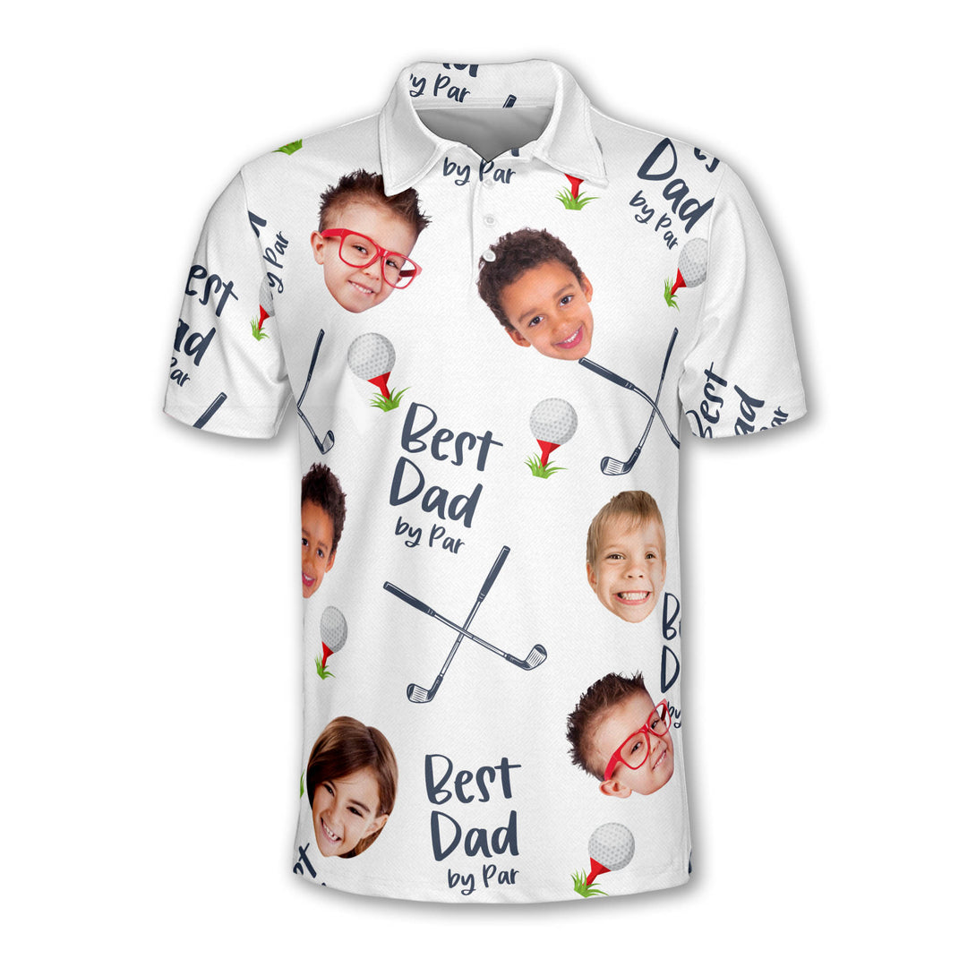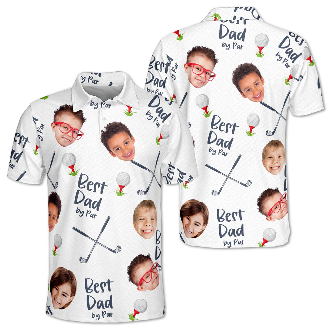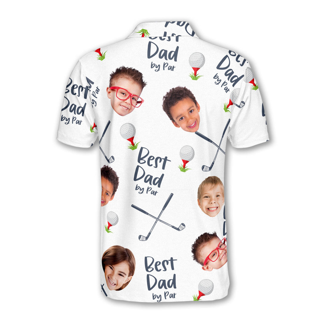 Custom Face Best Dad By Par Mens White Golf Polo Shirts, Custom Men Funny Golf Shirts For Father Day GE0074