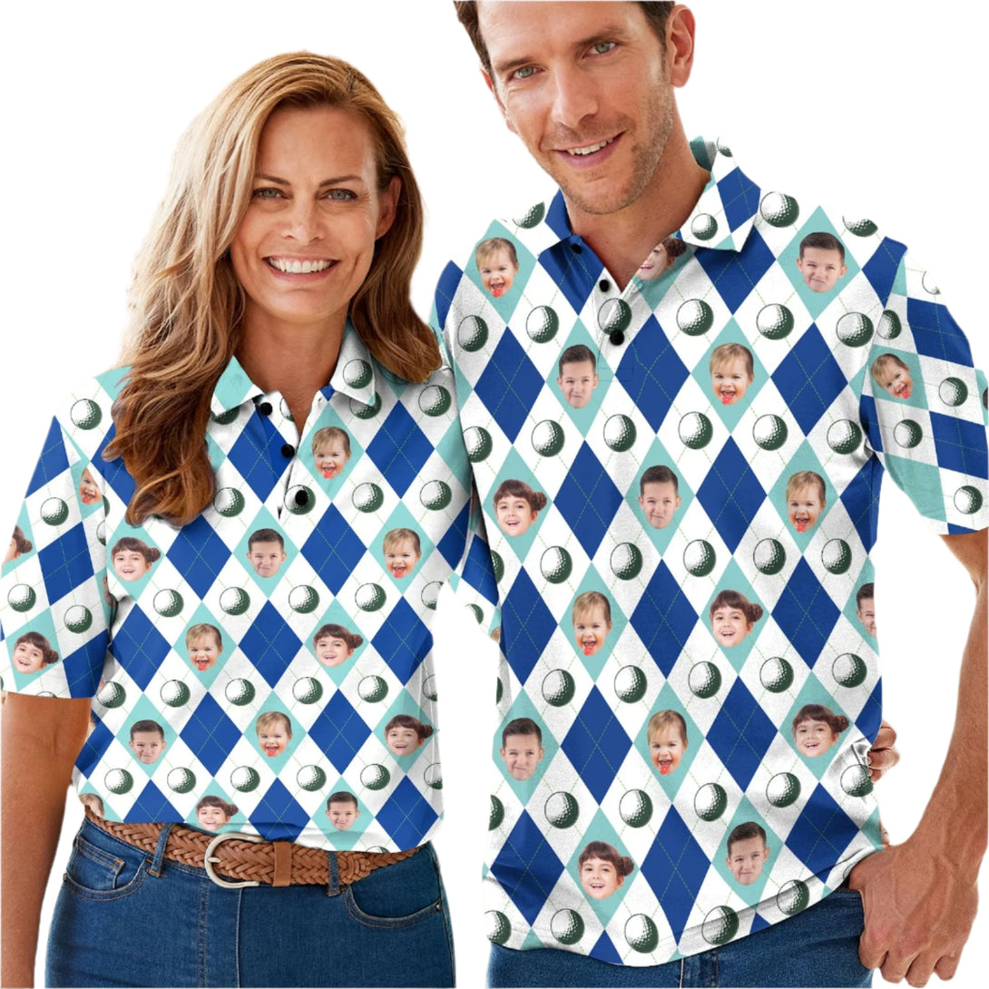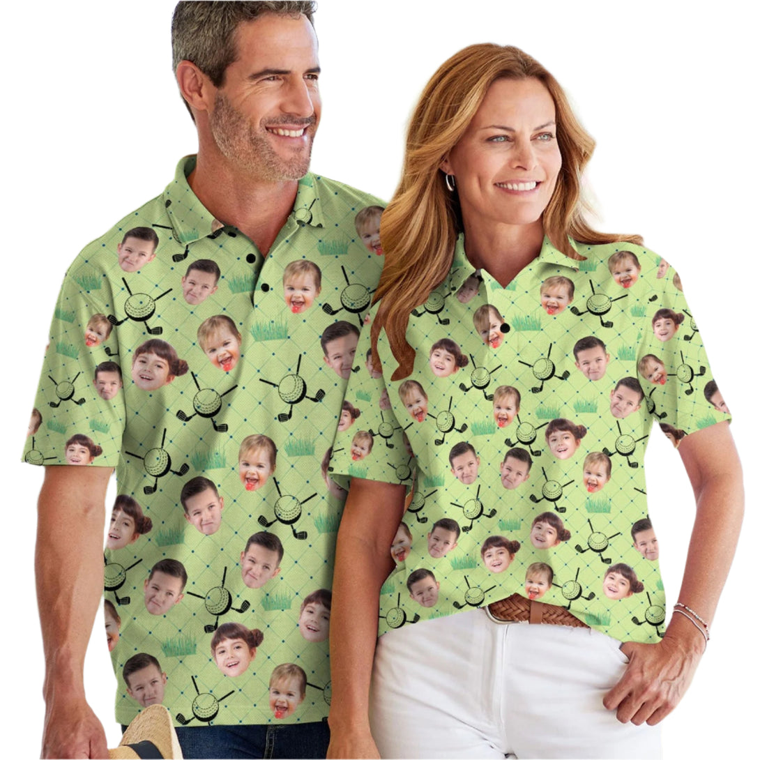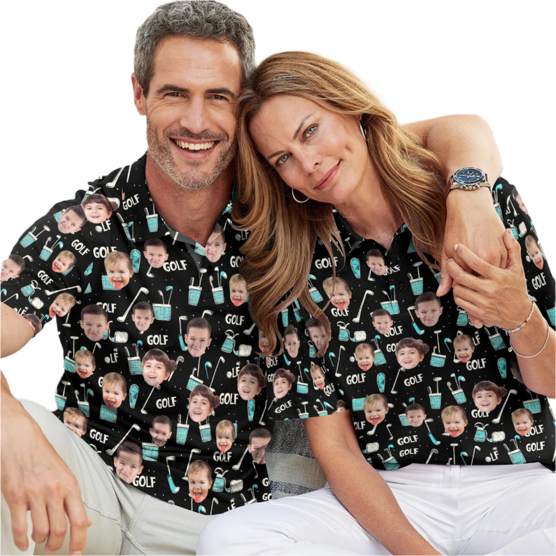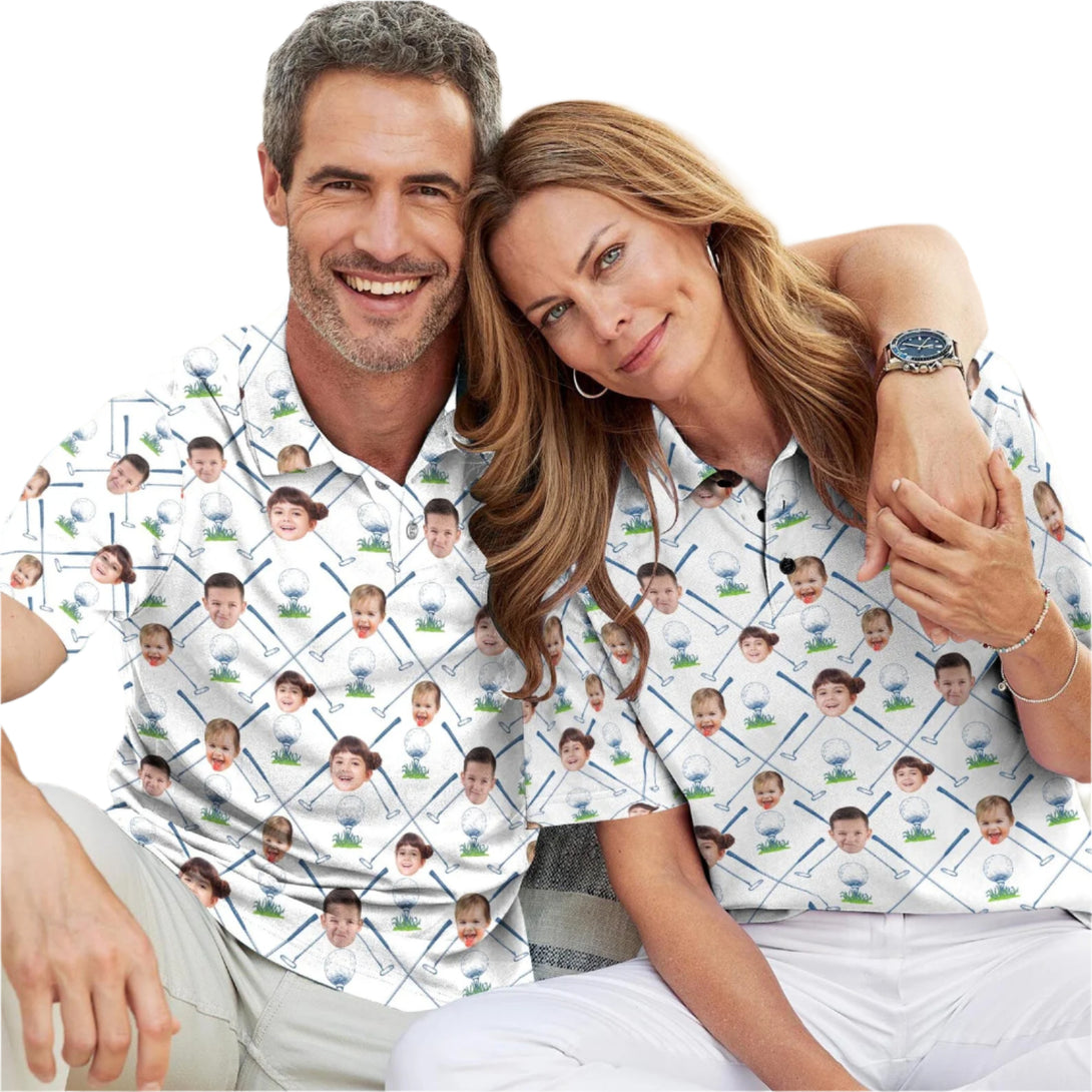 Custom Face Matching Golf Polo Shirts For Couples, Custom Funny Husband Wife Matching Golf Shirts GE0058