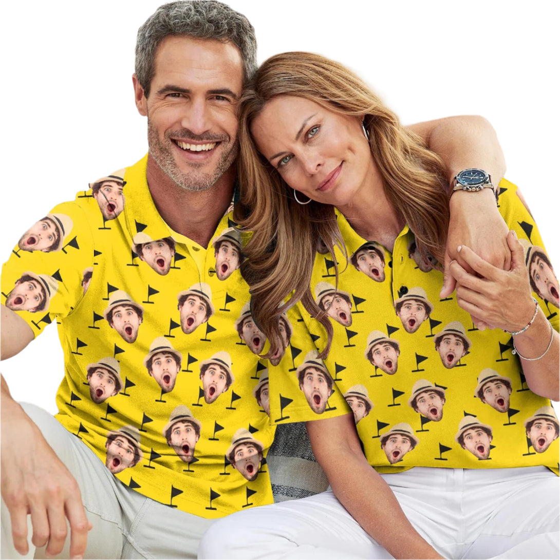Custom Face Matching Mens And Womens Golf Polo Shirts, Custom Funny Matching Golf Shirts GE0062