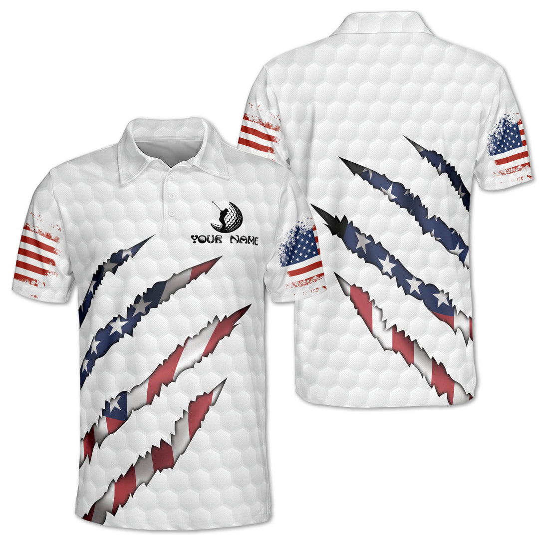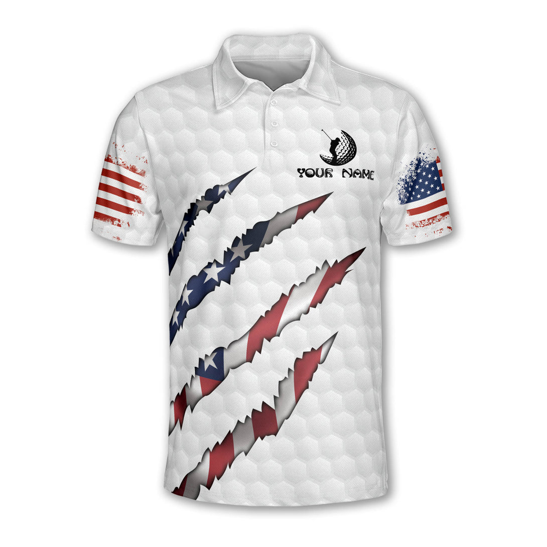Custom Men's American Flag Golf Polo Shirt, Custom Patriotic Mens Red White And Blue Golf Shirts GE0080