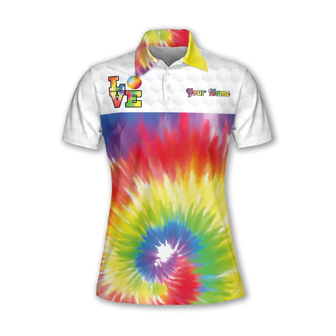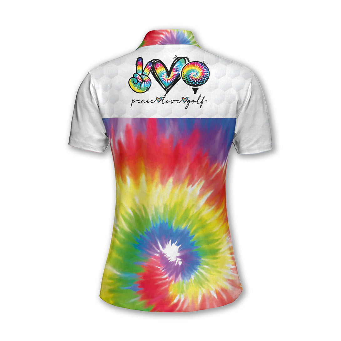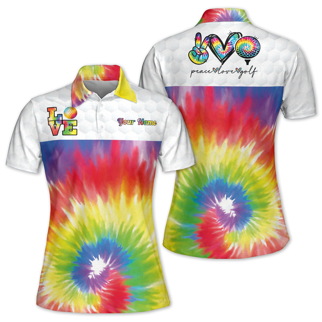 Custom Peace Love Golf Tie Dye Golf Polo Shirt Womens, Womens Tie Dye Golf Shirts GE0011