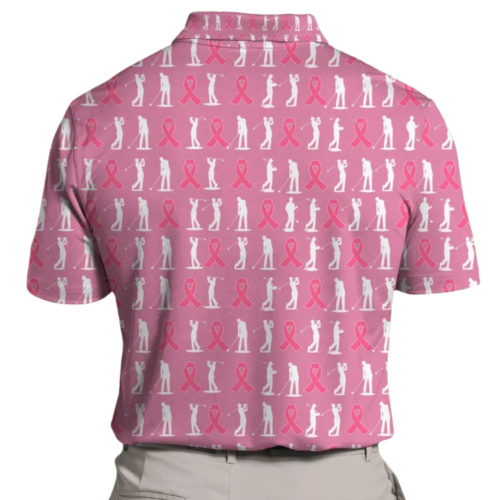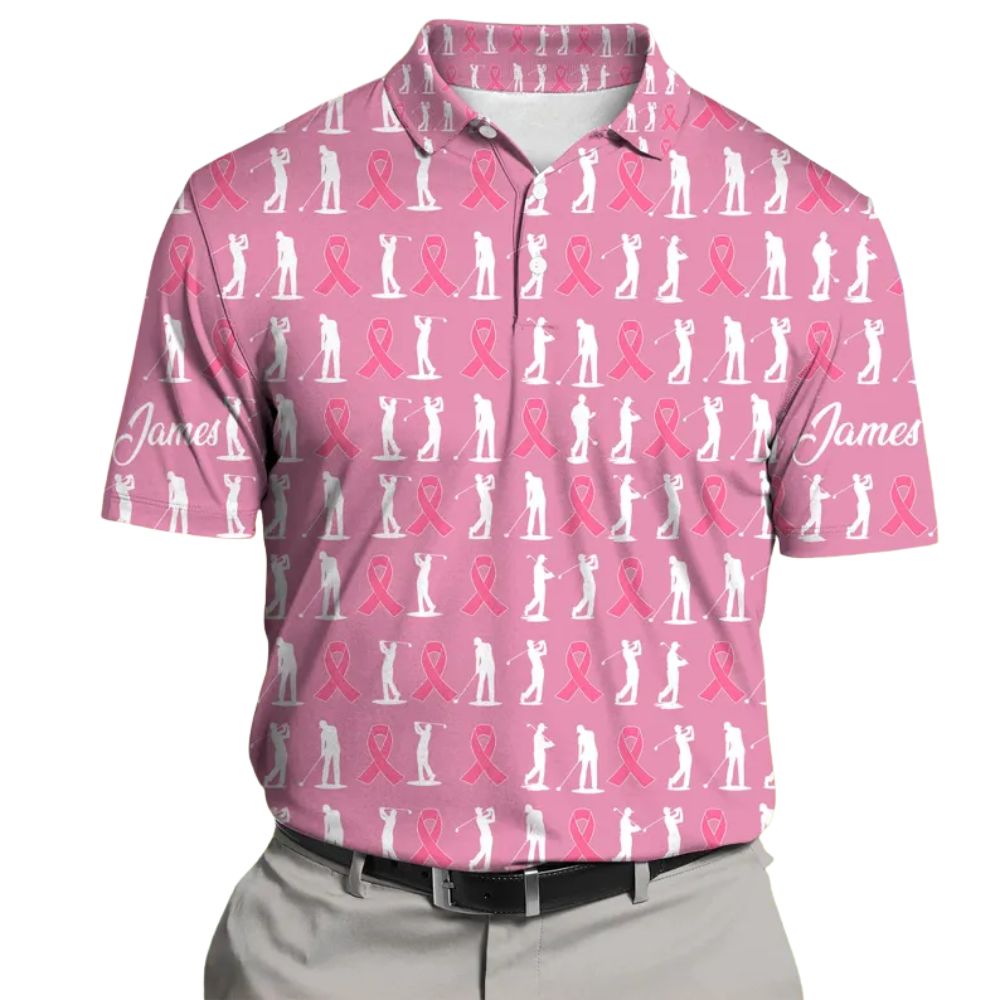 Custom Pink Ribbon Golf Polo Shirt For Men, Custom Men's Breast Cancer Awareness Golf Shirt GE0157