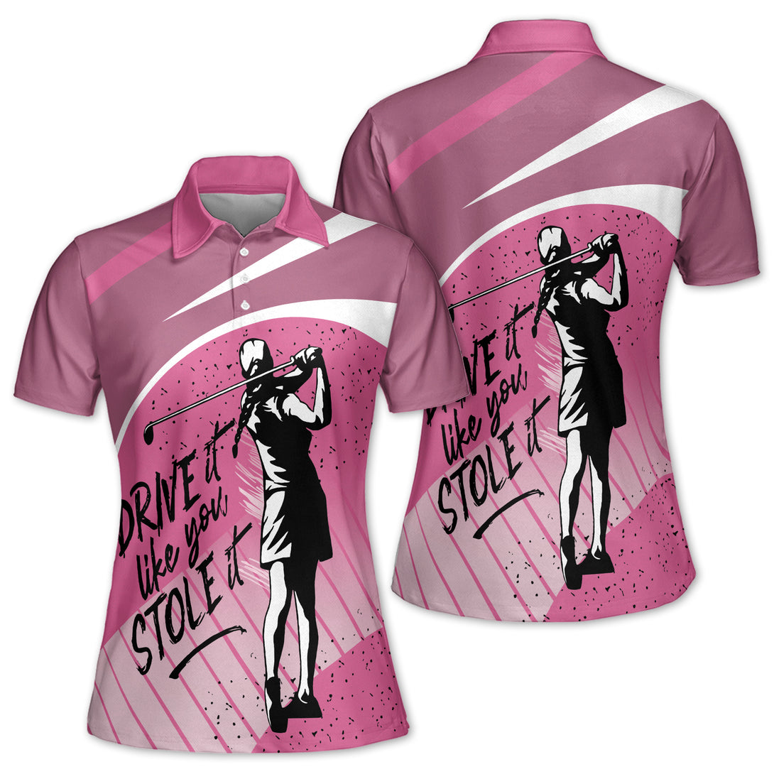 Drive It Like You Stole It Ladies Golf Polos, Funny Pink Golf Shirts For Women GZ0008