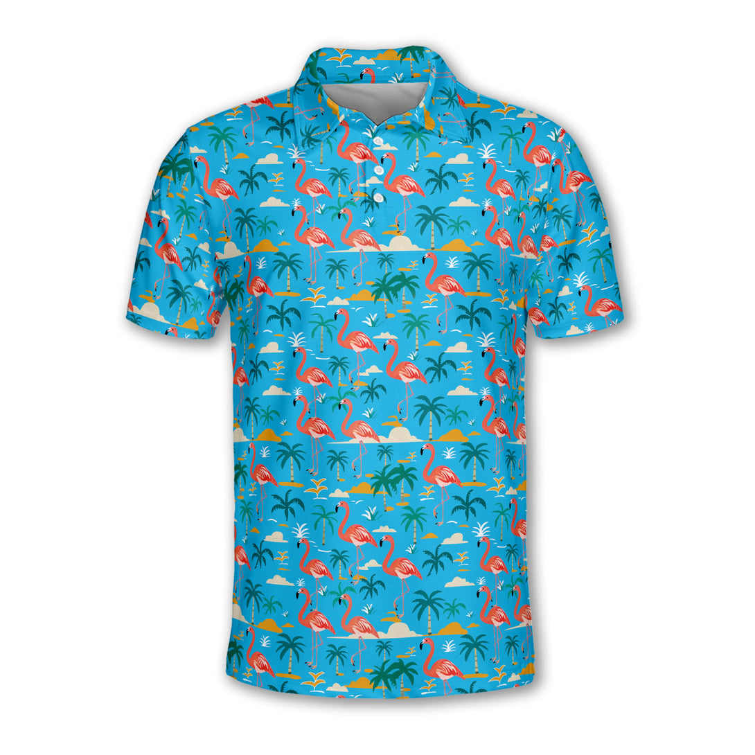 Flamingo Blue Golf Polo Shirts Men's, Mens Flamingo Golf Shirt GZ0154
