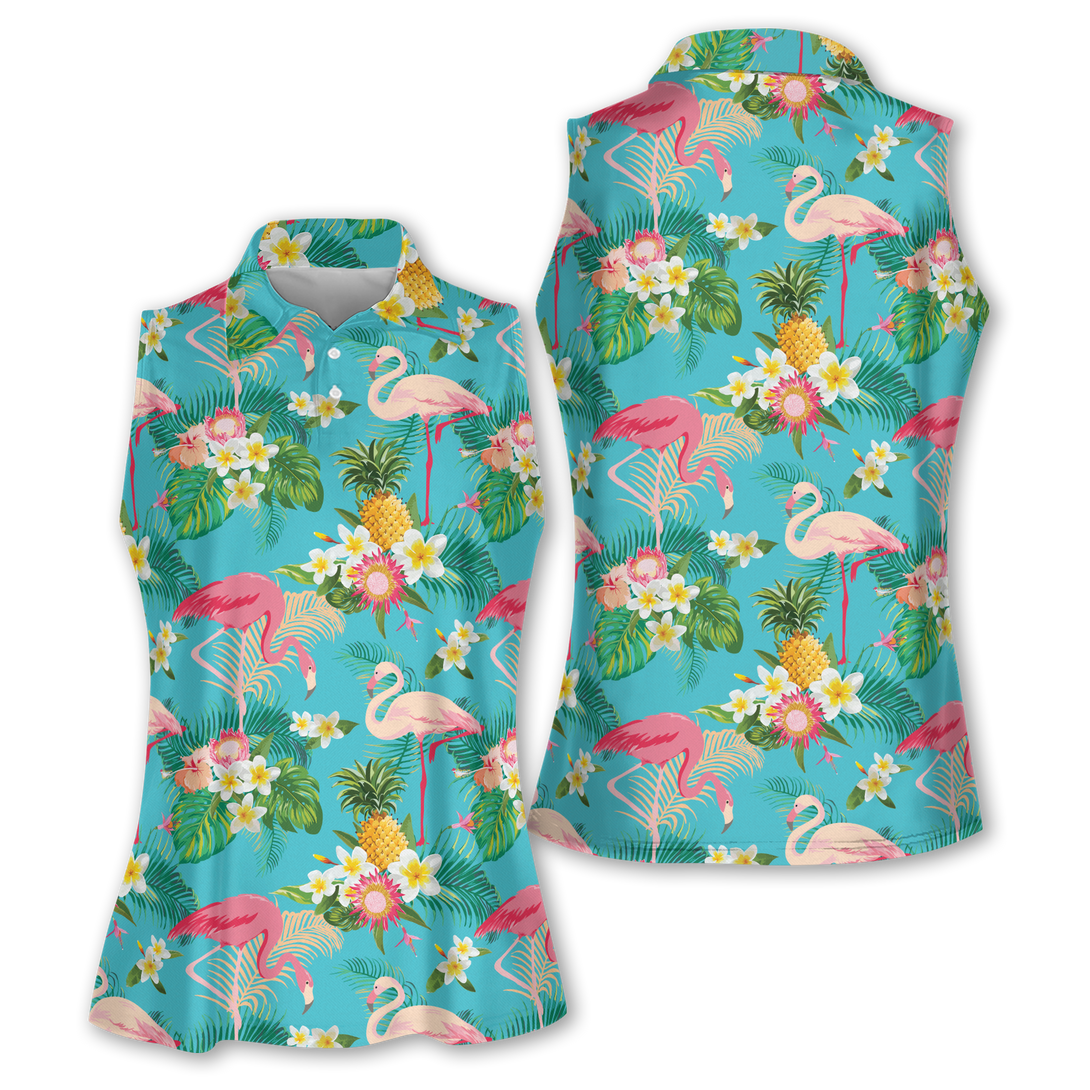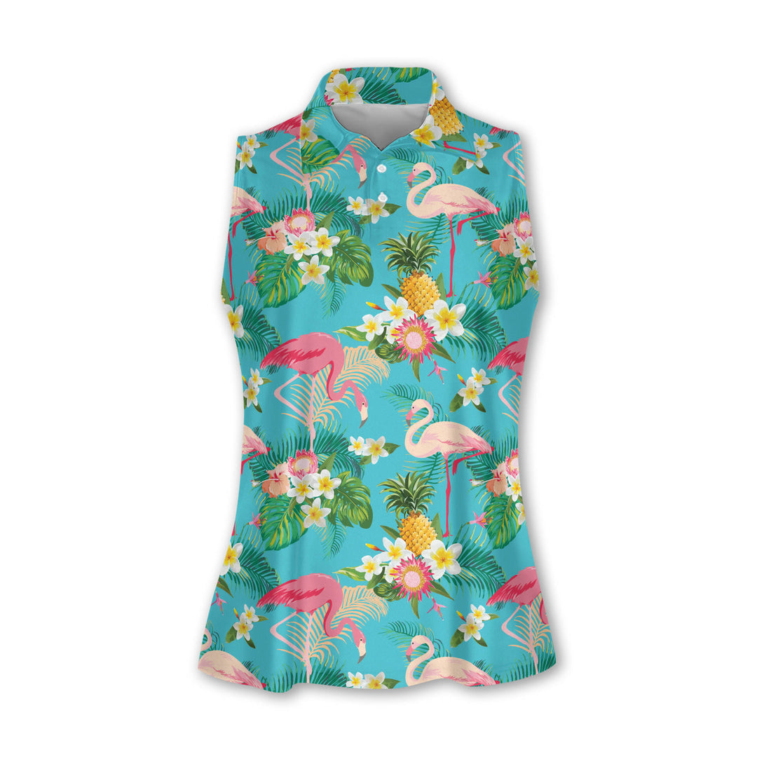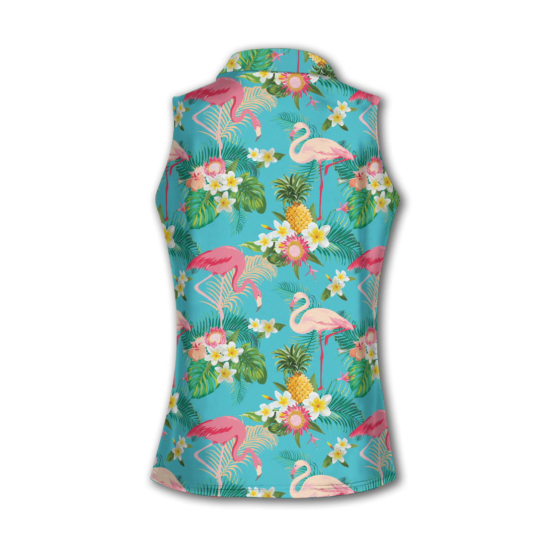 Flamingo Tropical Sleeveless Golf Shirt Women's, Ladies Tropical Golf Shirts GE0050