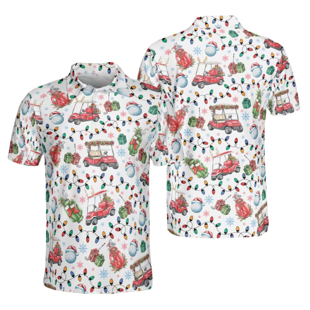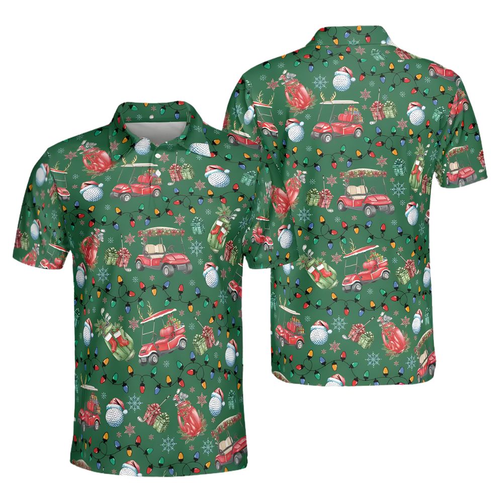 Golf Cart Christmas Golf Polo Shirt For Men, Mens Christmas Golf Shirt GE0160