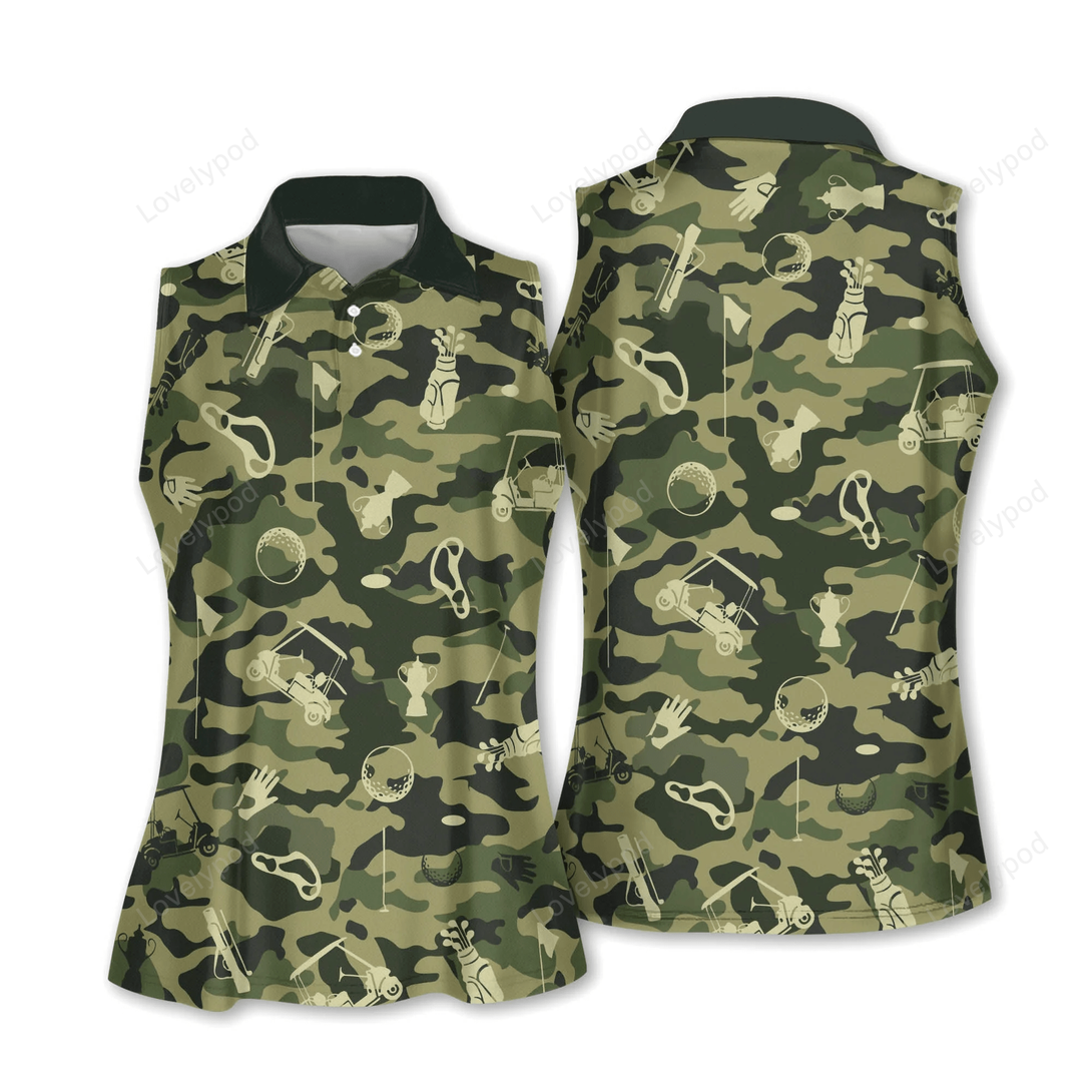 Womens Camo Sleeveless Golf Shirt, Ladies Camo Golf Shirt GY0346