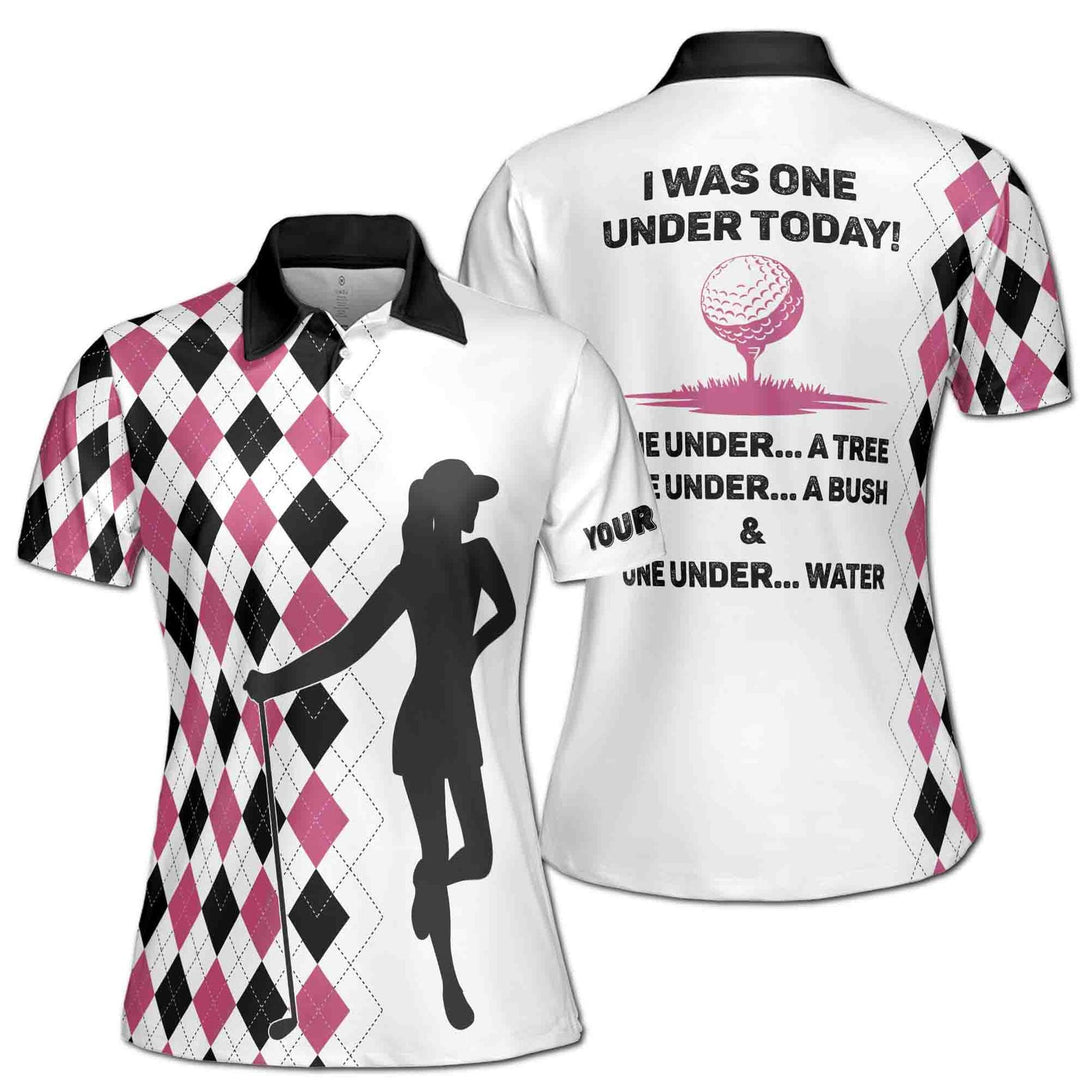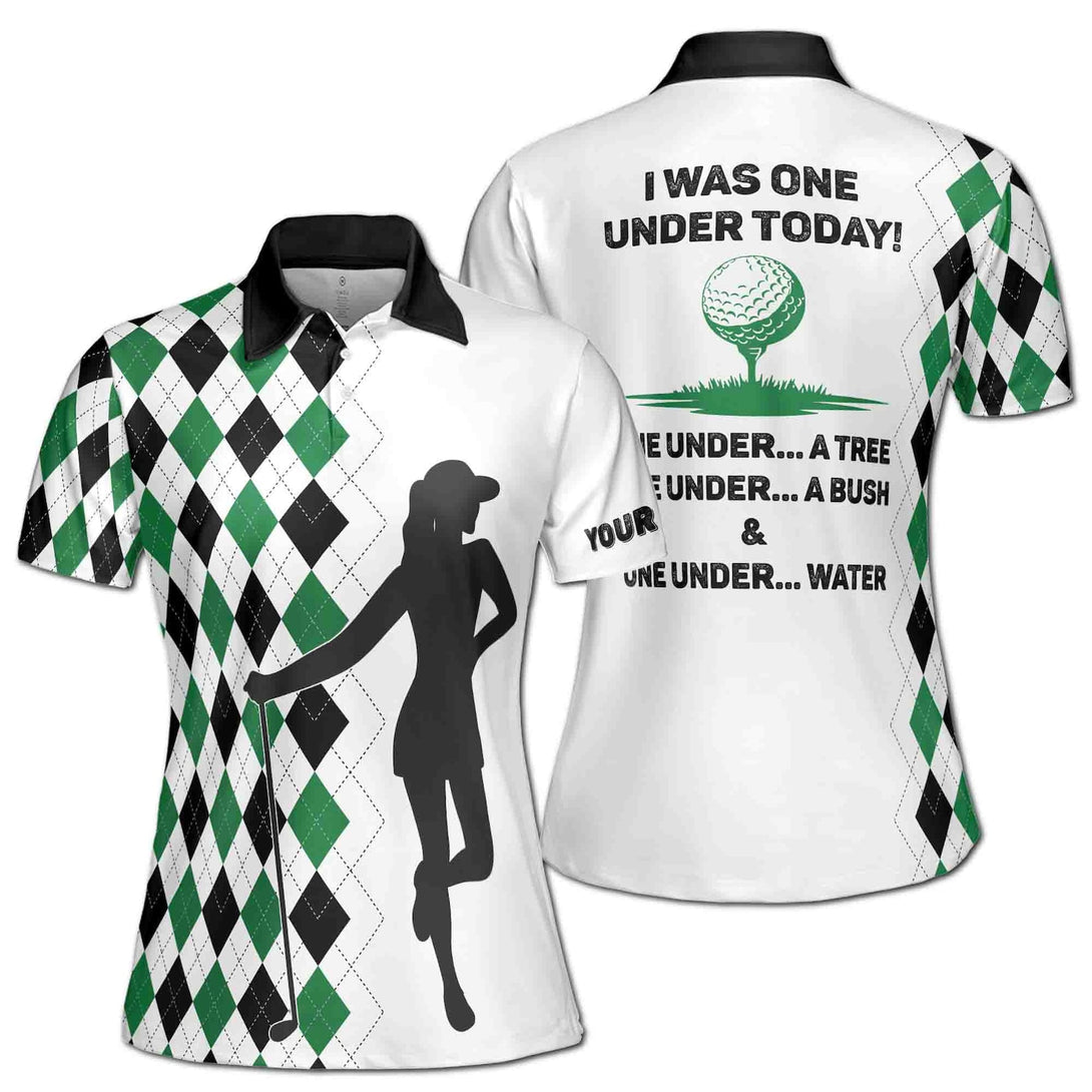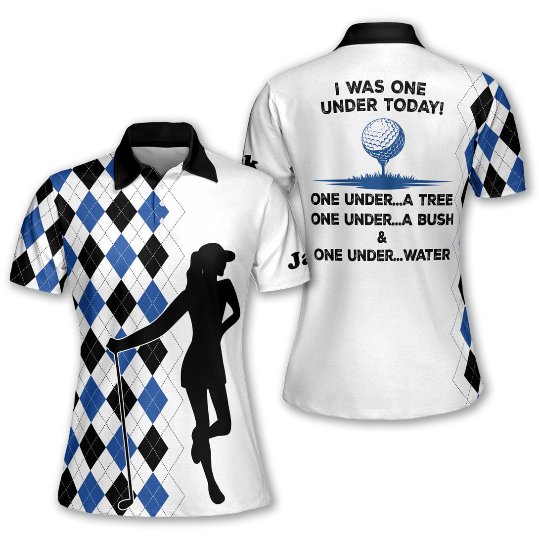 I Was One Under Today Women's Argyle Golf Polo Shirt, Fun Golf Shirts For Ladies GE0017
