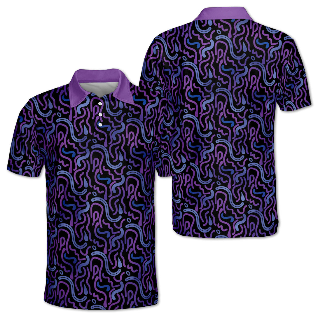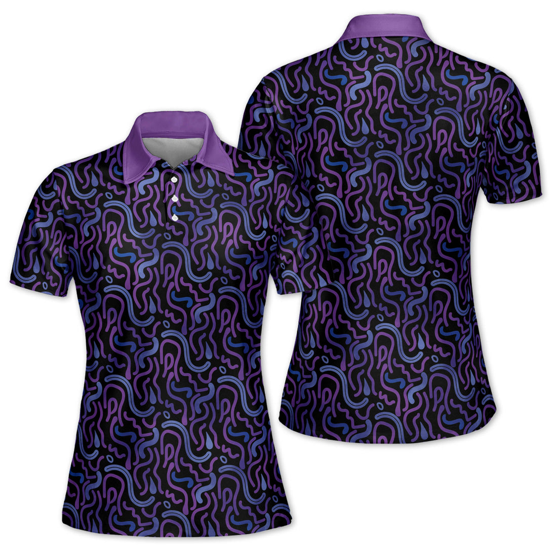 Matching Abstract Purple Golf Polo Shirts For Couples, Couples Matching Golf Shirts GE0061
