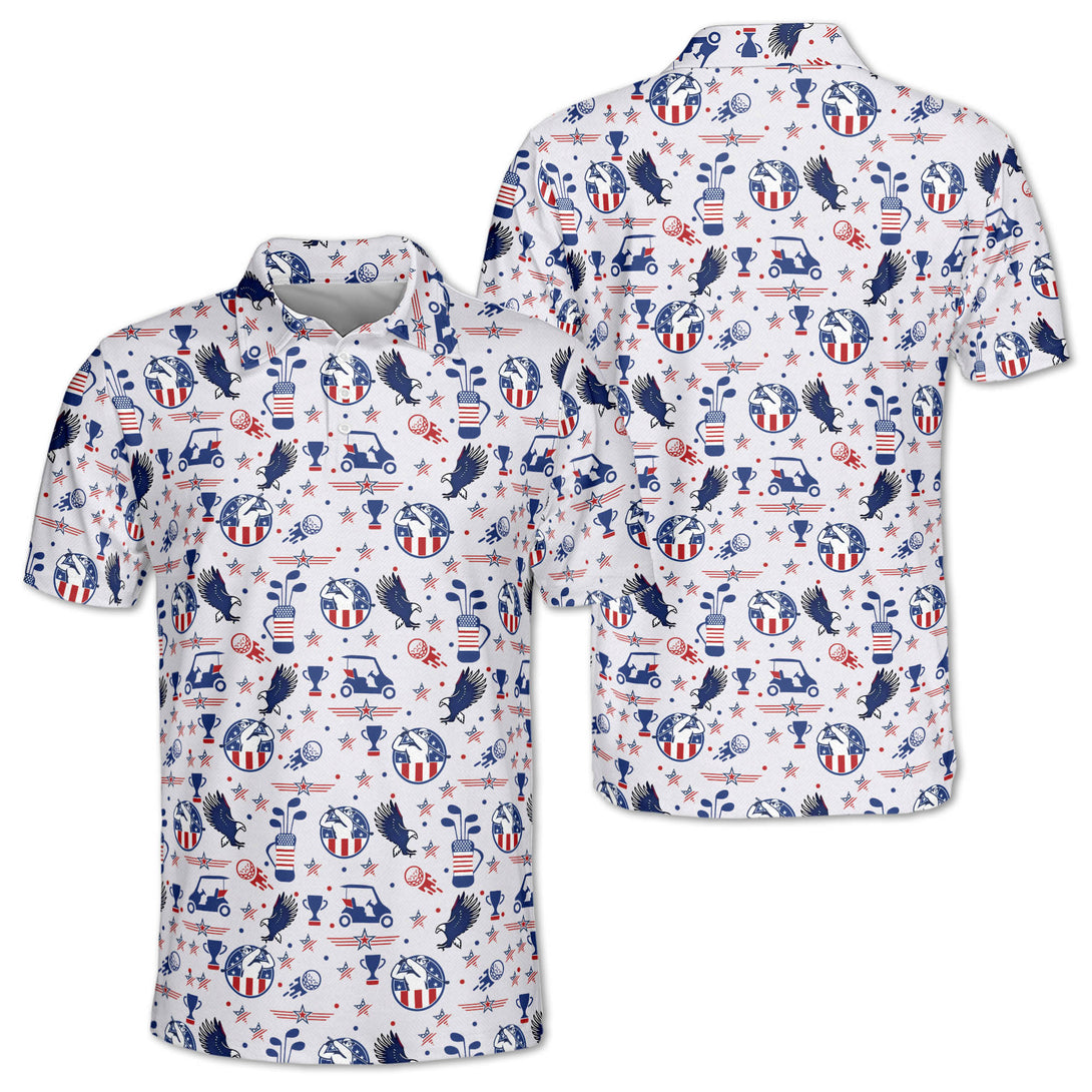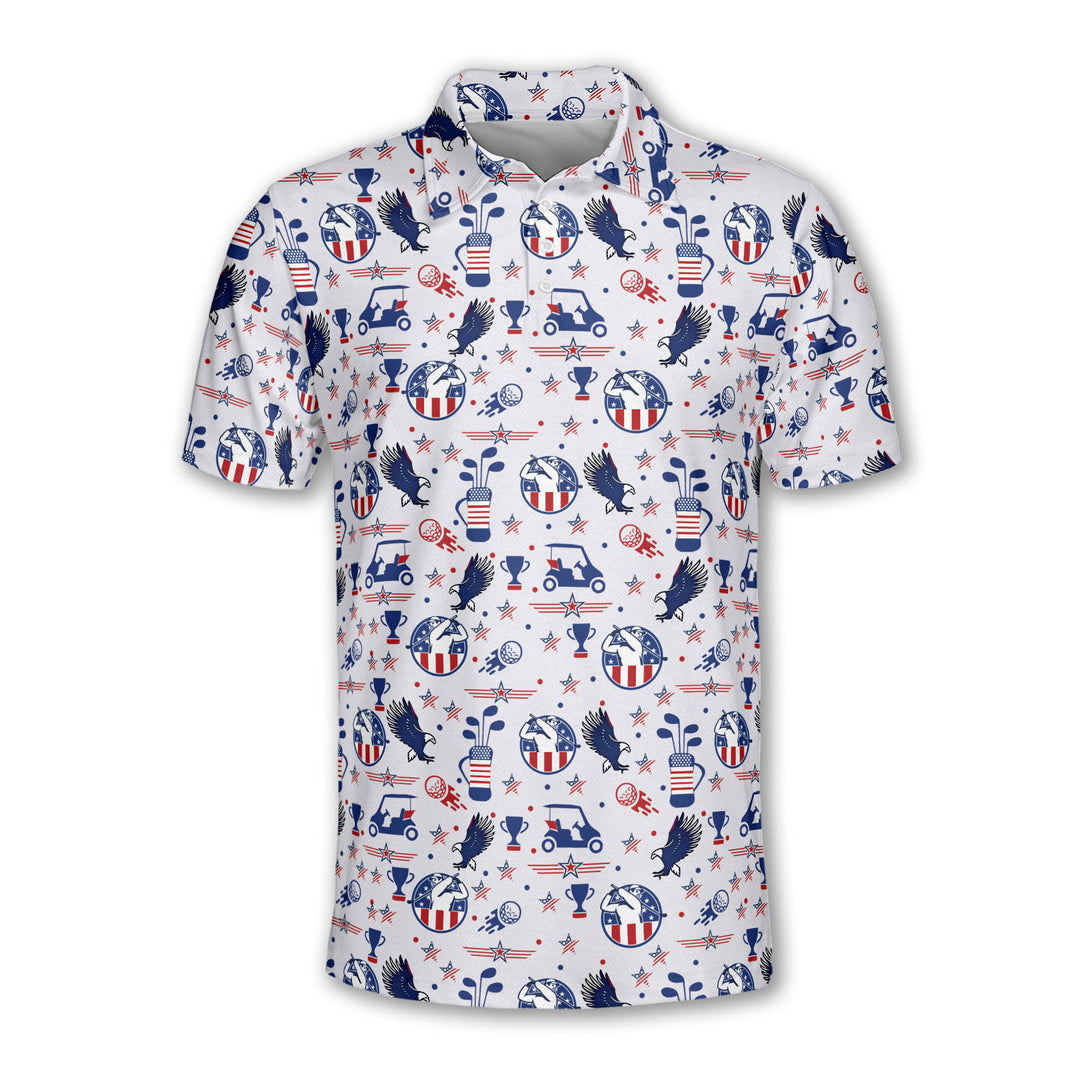 Men's Patriotic White Golf Polo Shirts, 4th Of July Golf Shirts For Men GZ0132