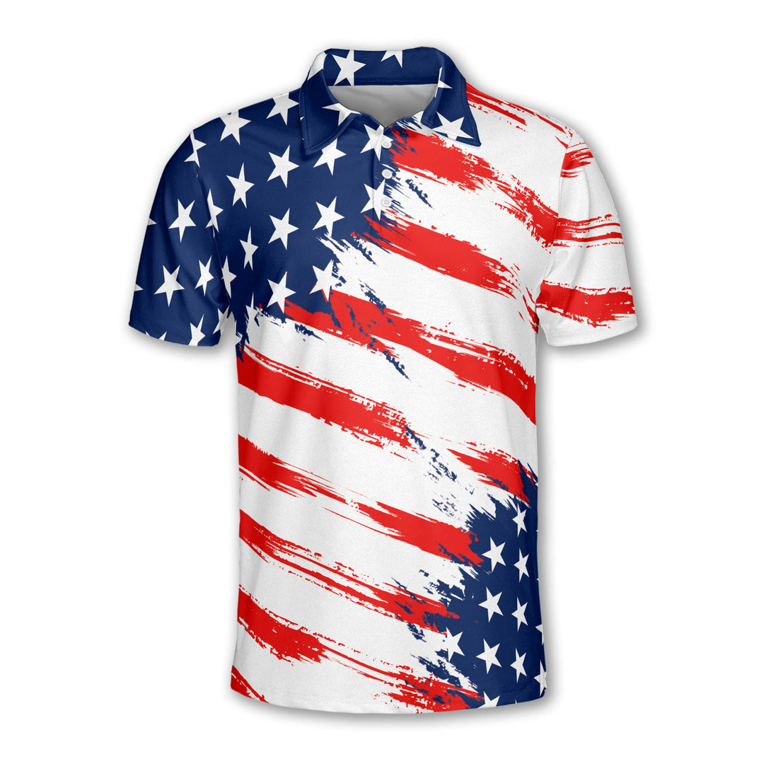 Men's Red White And Blue American Flag Golf Polo Shirts, Men Patriotic Golf Shirts GZ0079