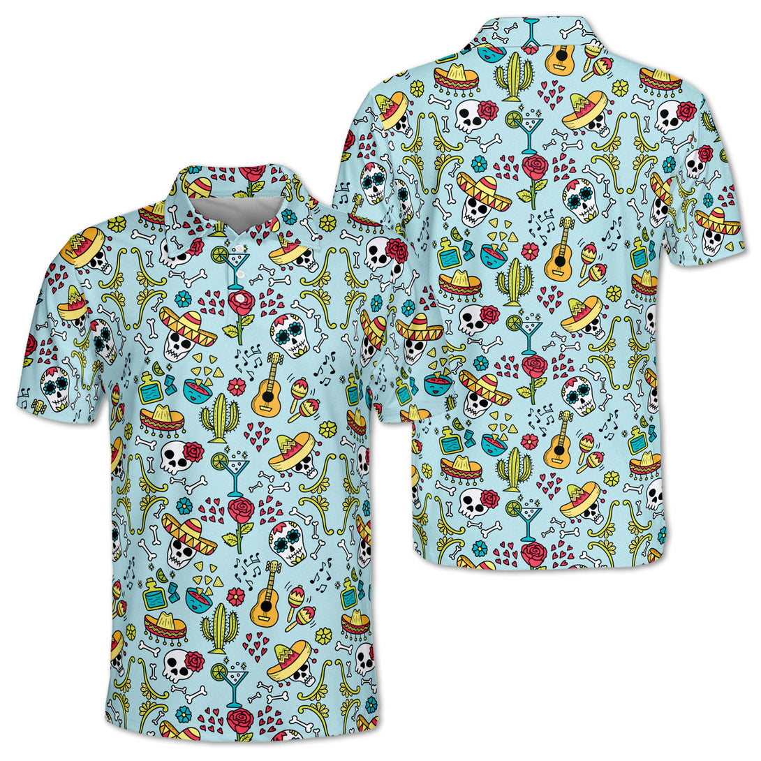 Mexican Skull Cactus Cinco De Mayo Golf Polo Shirt For Men, Cinco De Mayo Golf Shirt GZ0070
