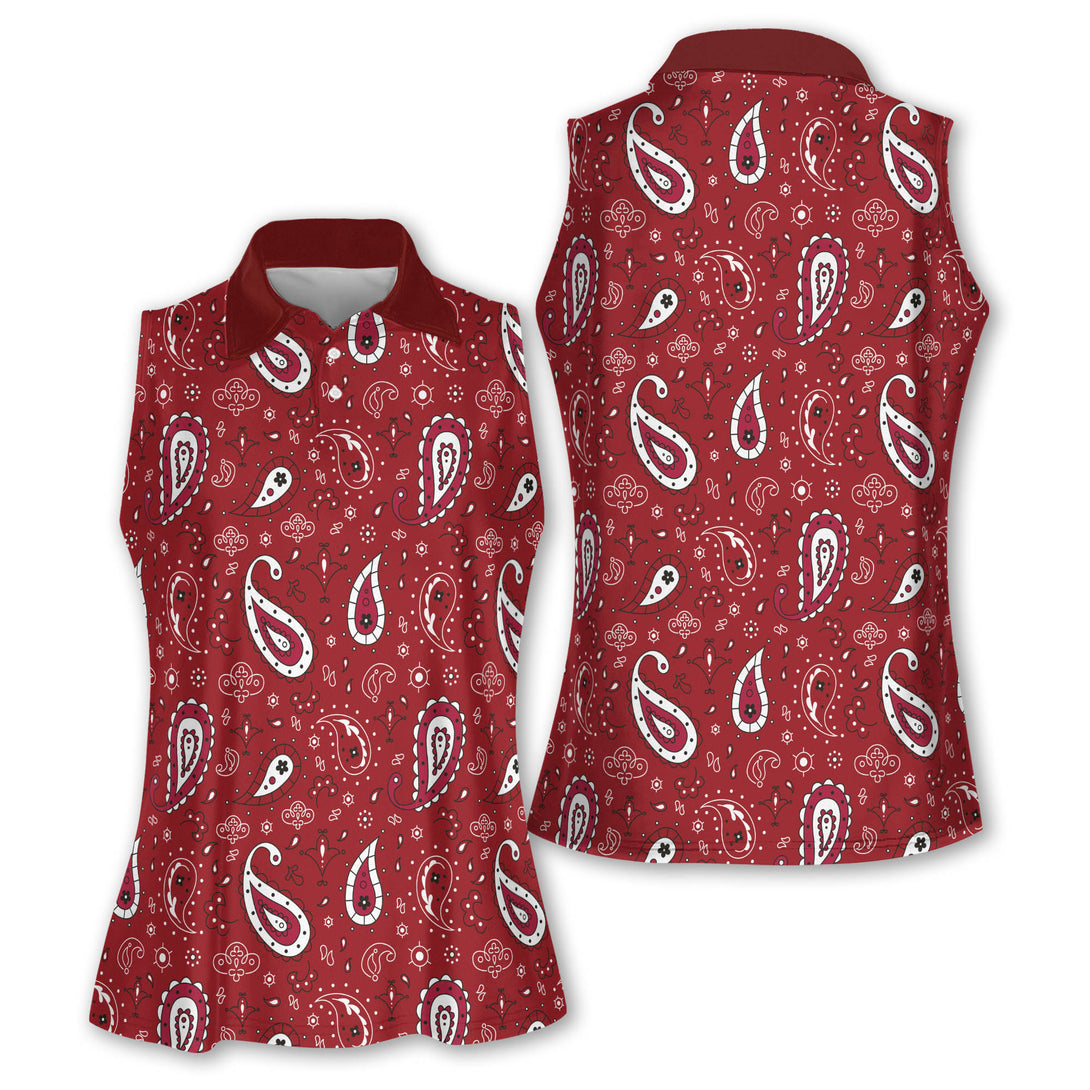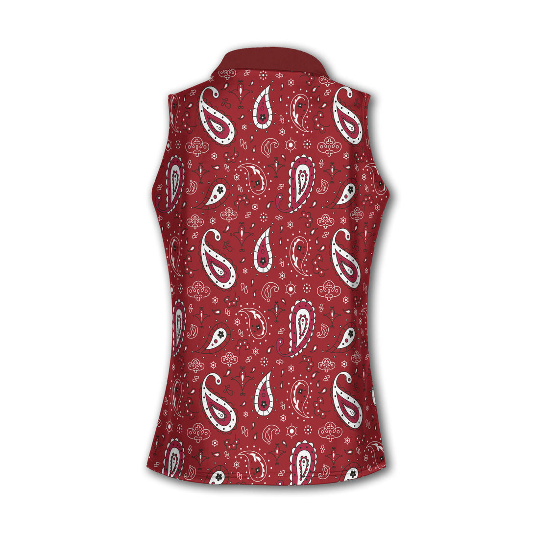 Paisley Bandana Sleeveless Womens Golf Shirt, Western Golf Shirts Women GE0027