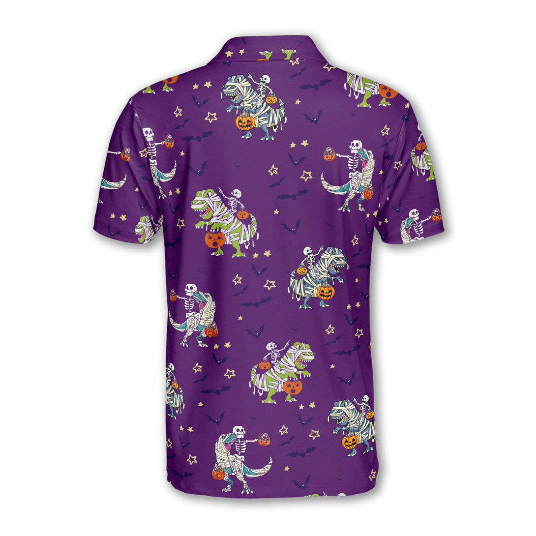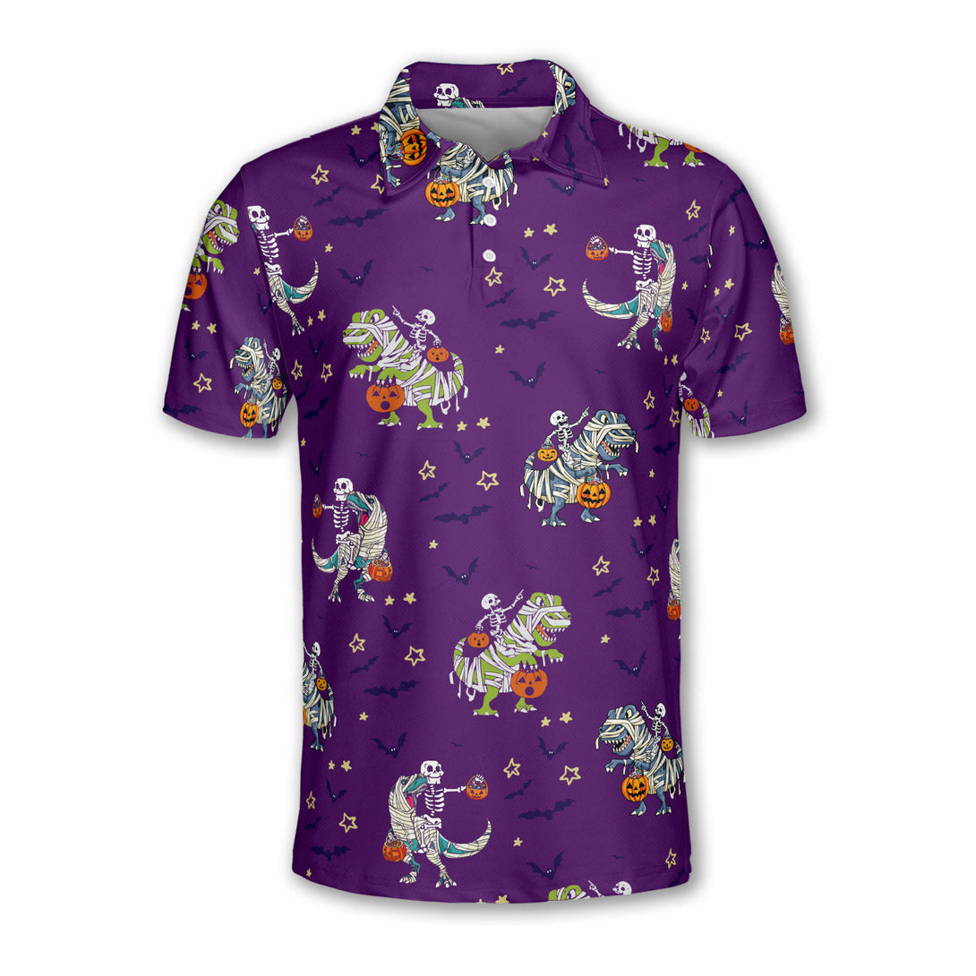 Skull Dinosaur Halloween Mens Purple Golf Polo Shirt, Mens Halloween Golf Shirt GZ0118