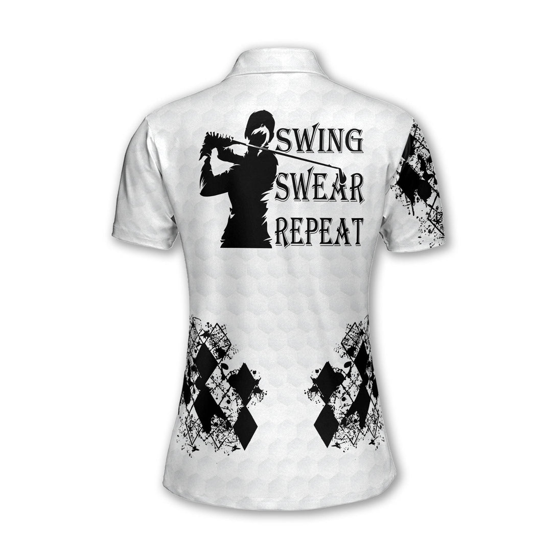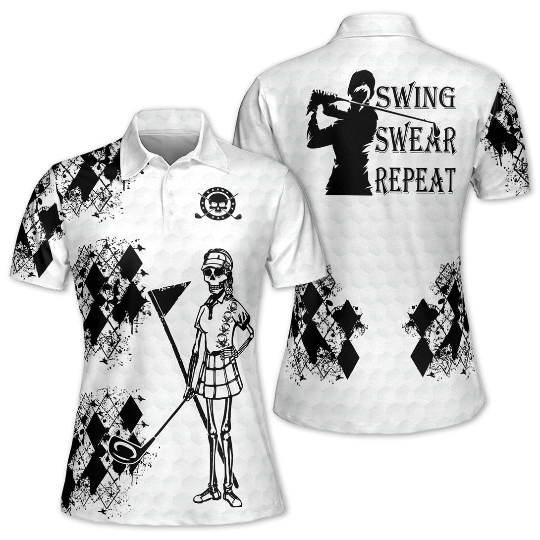Swing Swear Repeat Skull Golf Polo Shirt For Women, Funny Skull Golf Shirt Womens GZ0010