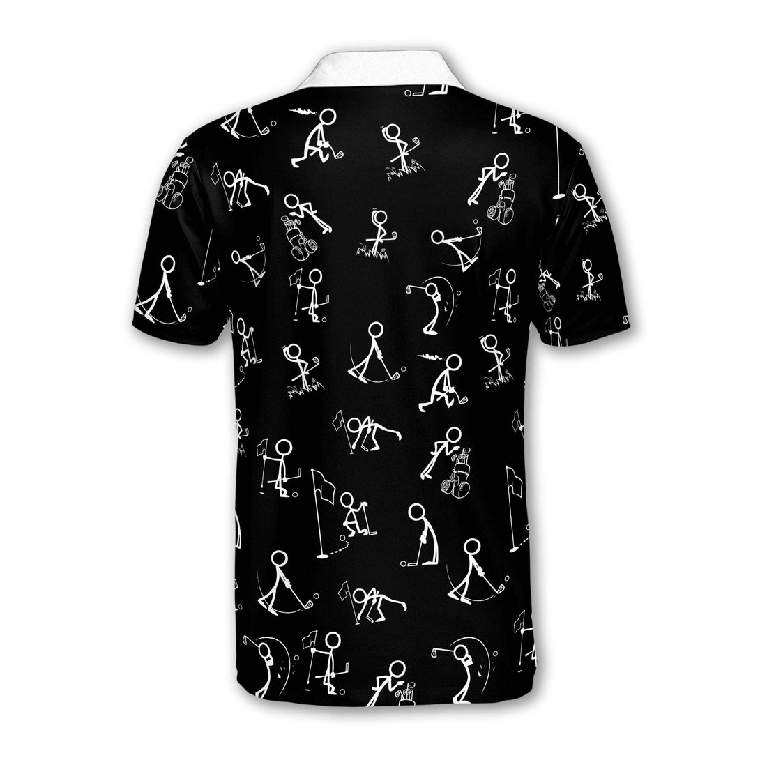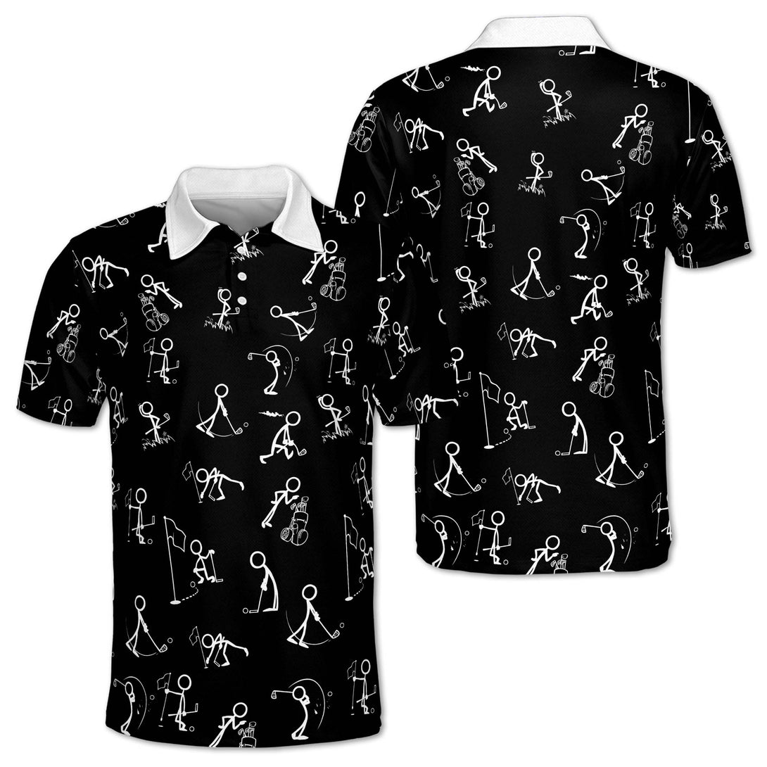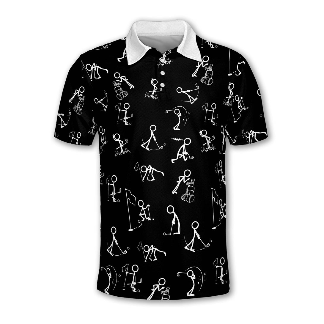 Stickfigures Mens Black Golf Polo Shirt, Fun Golf Shirts For Men GZ0140