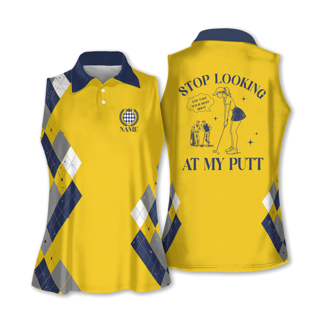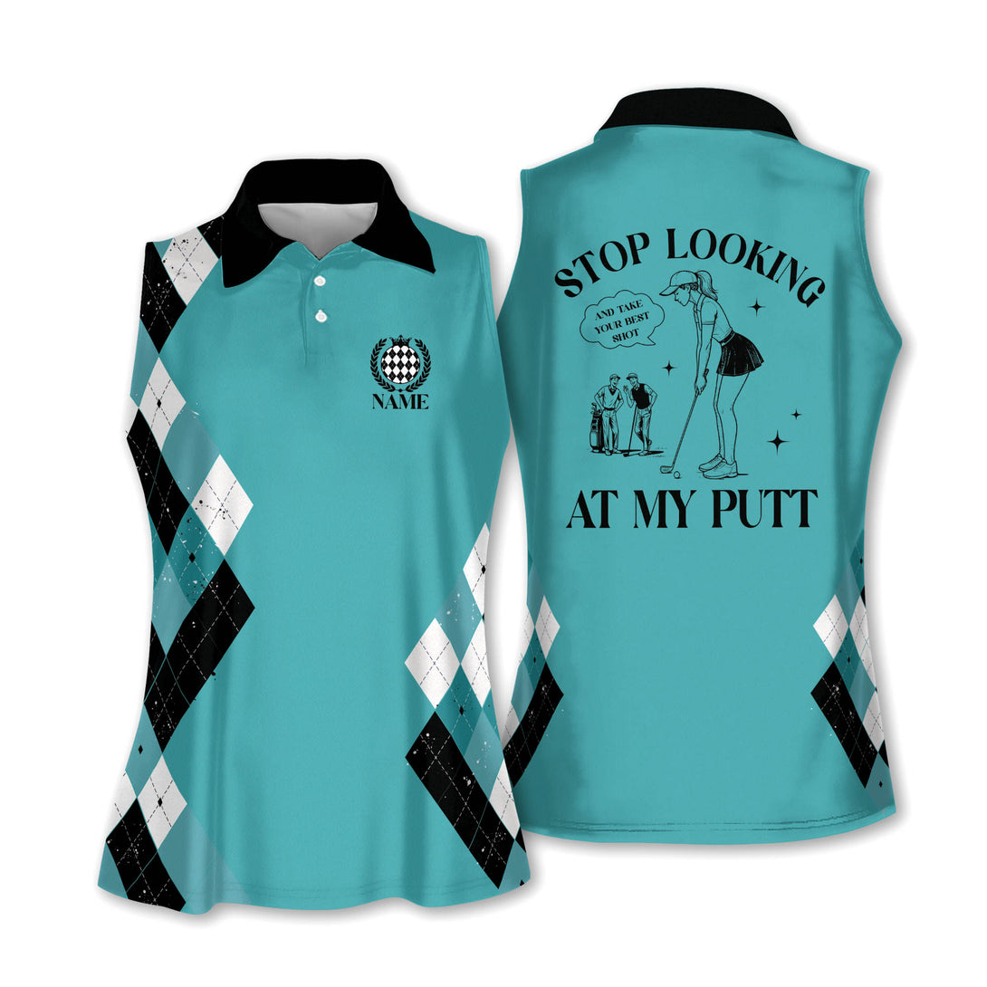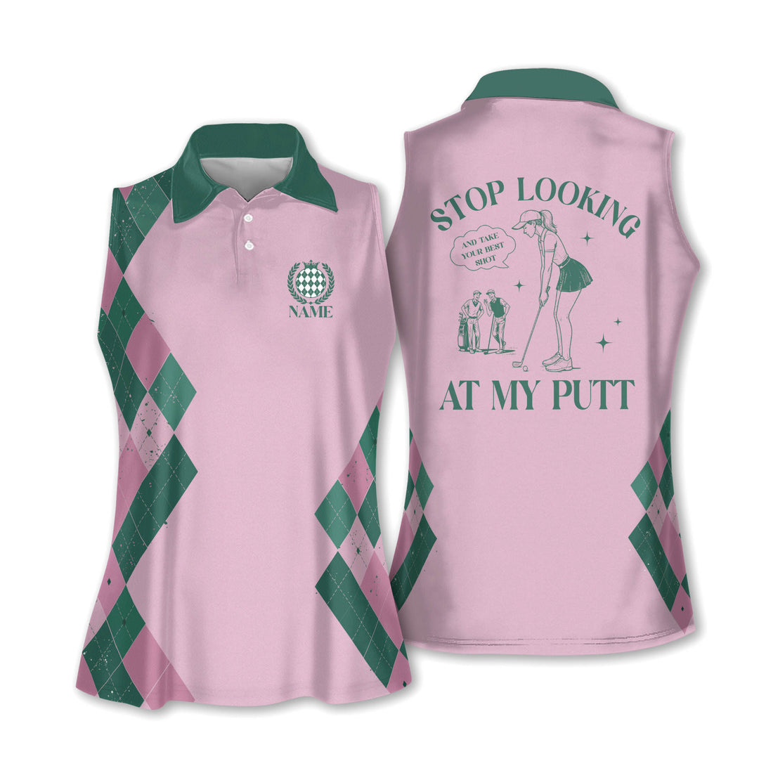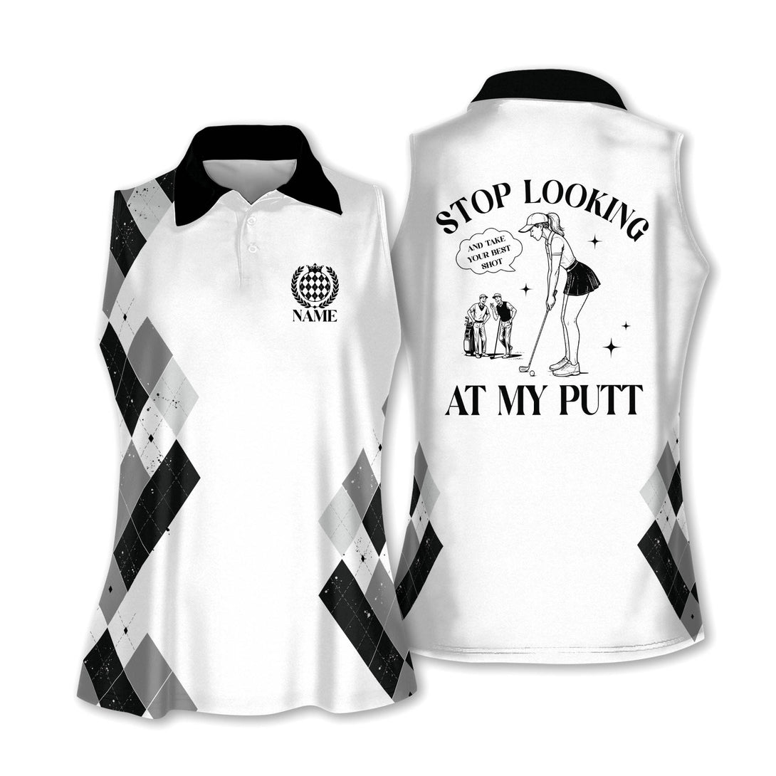 Stop Looking At My Putt Custom Sleeveless Golf Shirt For Women, Custom Funny Golf Shirts Women GE0042
