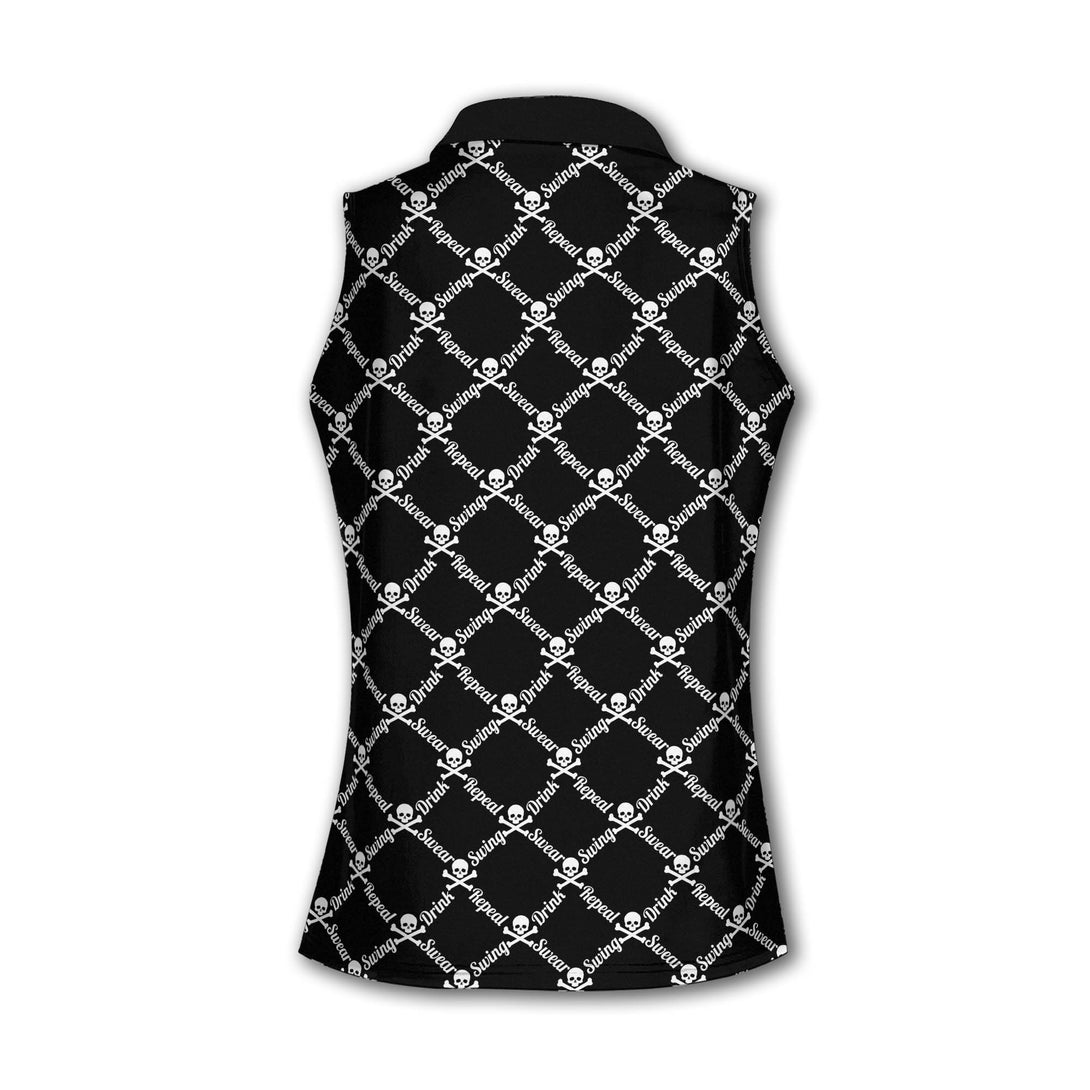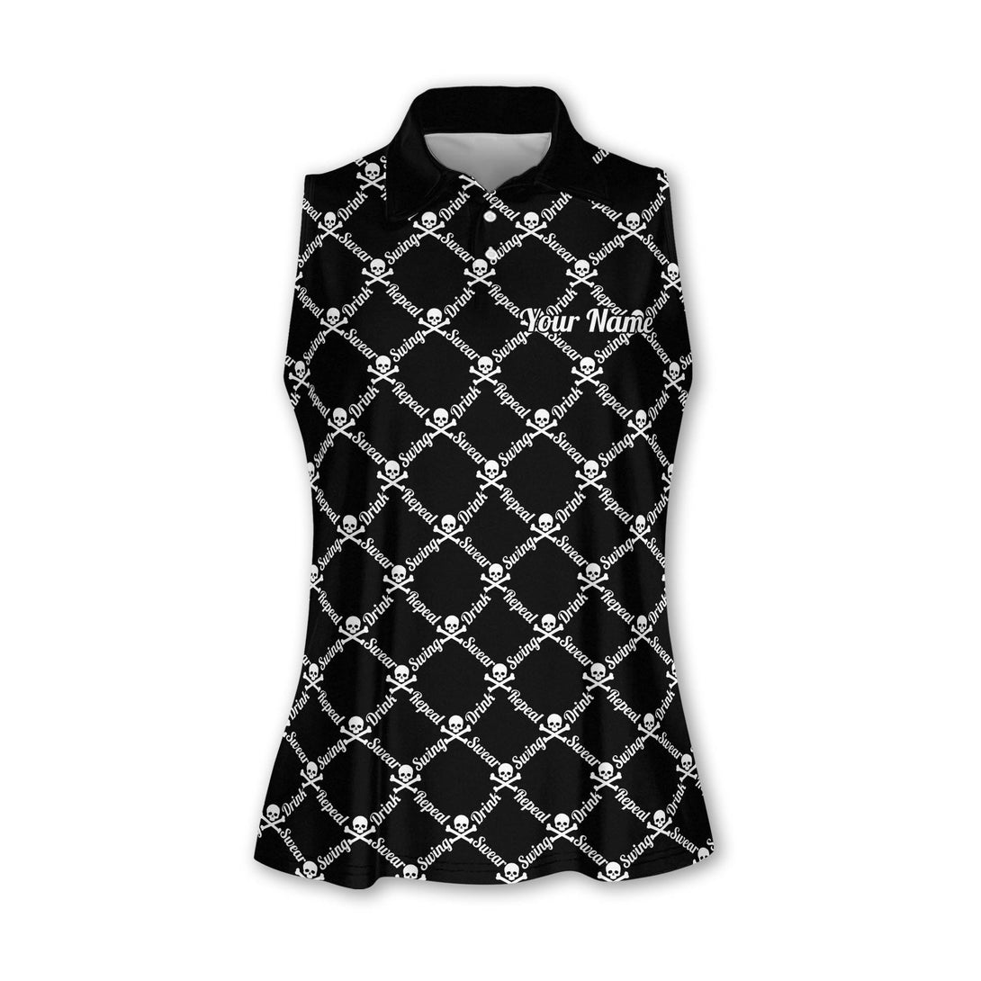 Swing Swear Drink Repeat Custom Skull Sleeveless Golf Shirt For Women, Custom Women's Funny Skull Golf Shirt GZ0024