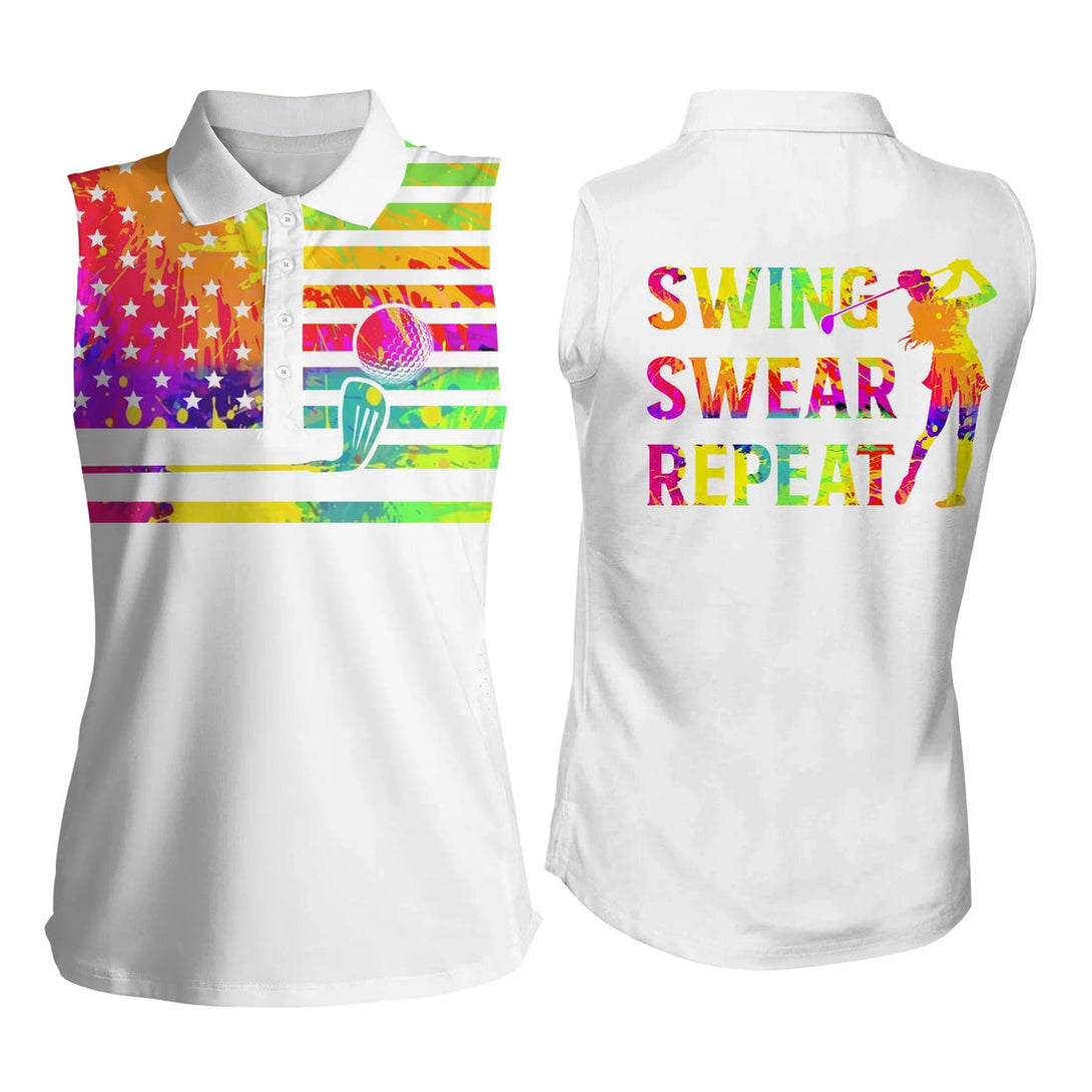 Swing Swear Repeat Womens Sleeveless Golf Shirts, Funny Golf Shirts For Women SO1007