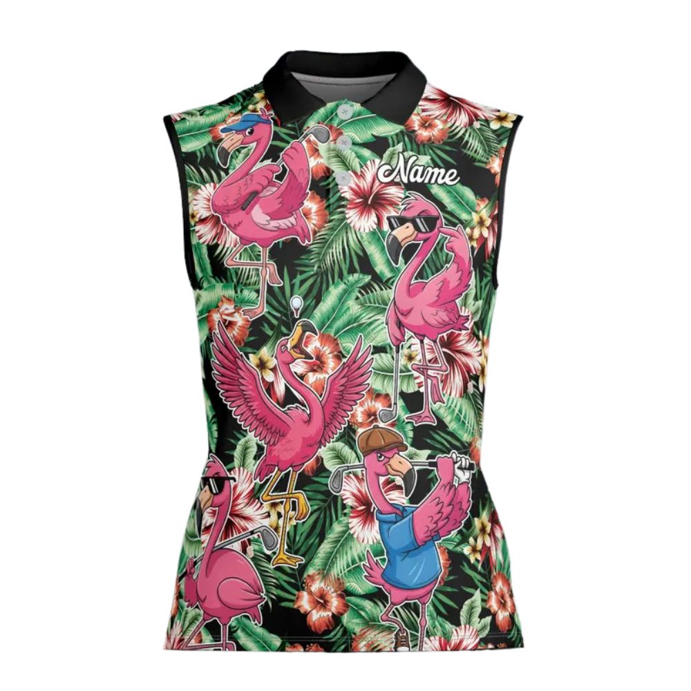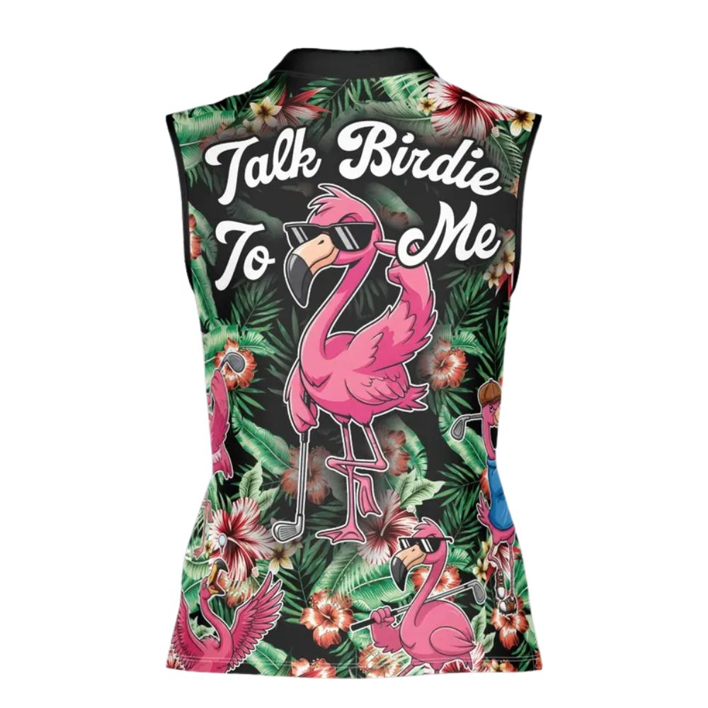 Talk Birdie To Me Custom Flamingo Tropical Sleeveless Golf Shirt Womens, Custom Funny Flamingo Golf Shirts For Ladies GE0161