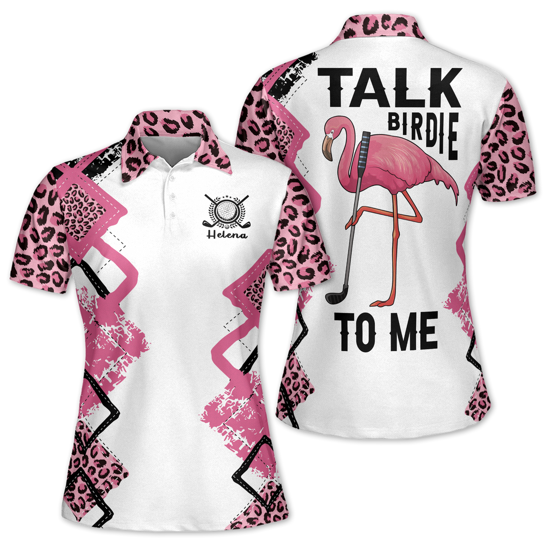 Talk Birdie To Me Custom Women's Golf Polo Shirts, Custom Funny Flamingo Golf Shirt Women GZ0007