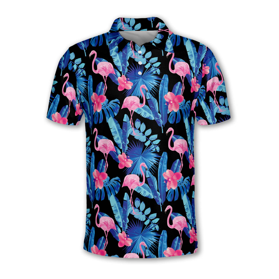 Tropical Flamingo Mens Golf Polo Shirts, Flamingo Golf Shirts Men's GZ0094