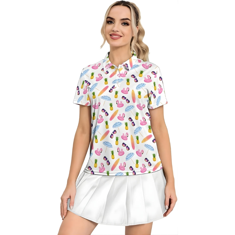 Tropical Summer Flamingo Golf Polo Shirt Womens, Summer Golf Shirt For Ladies GZ0183