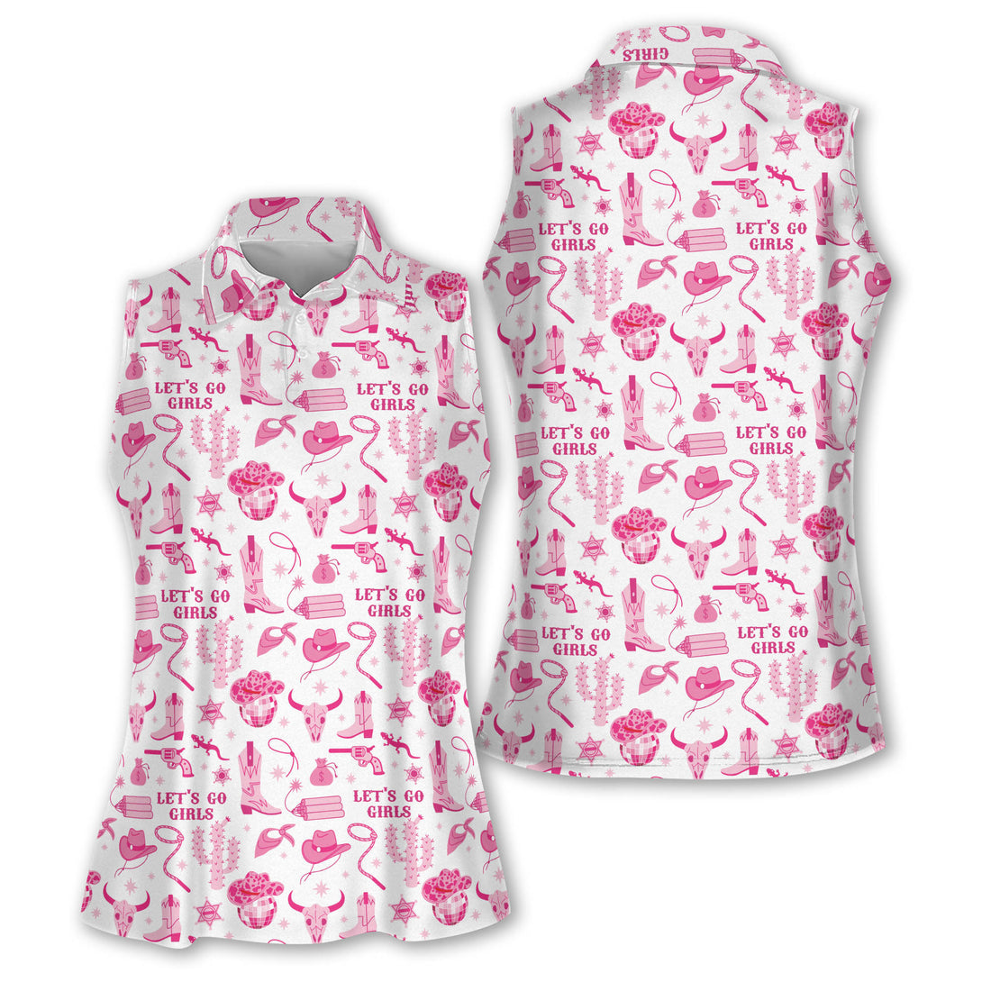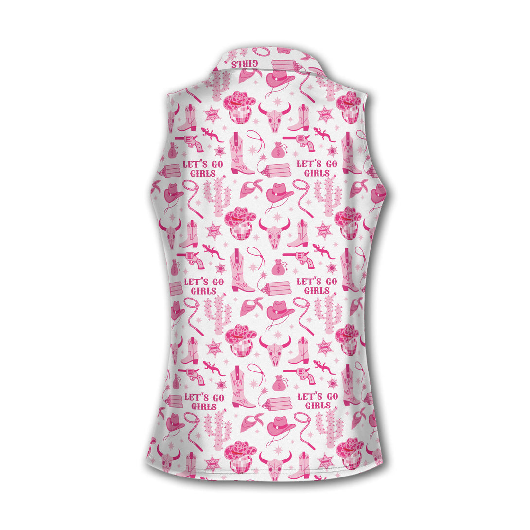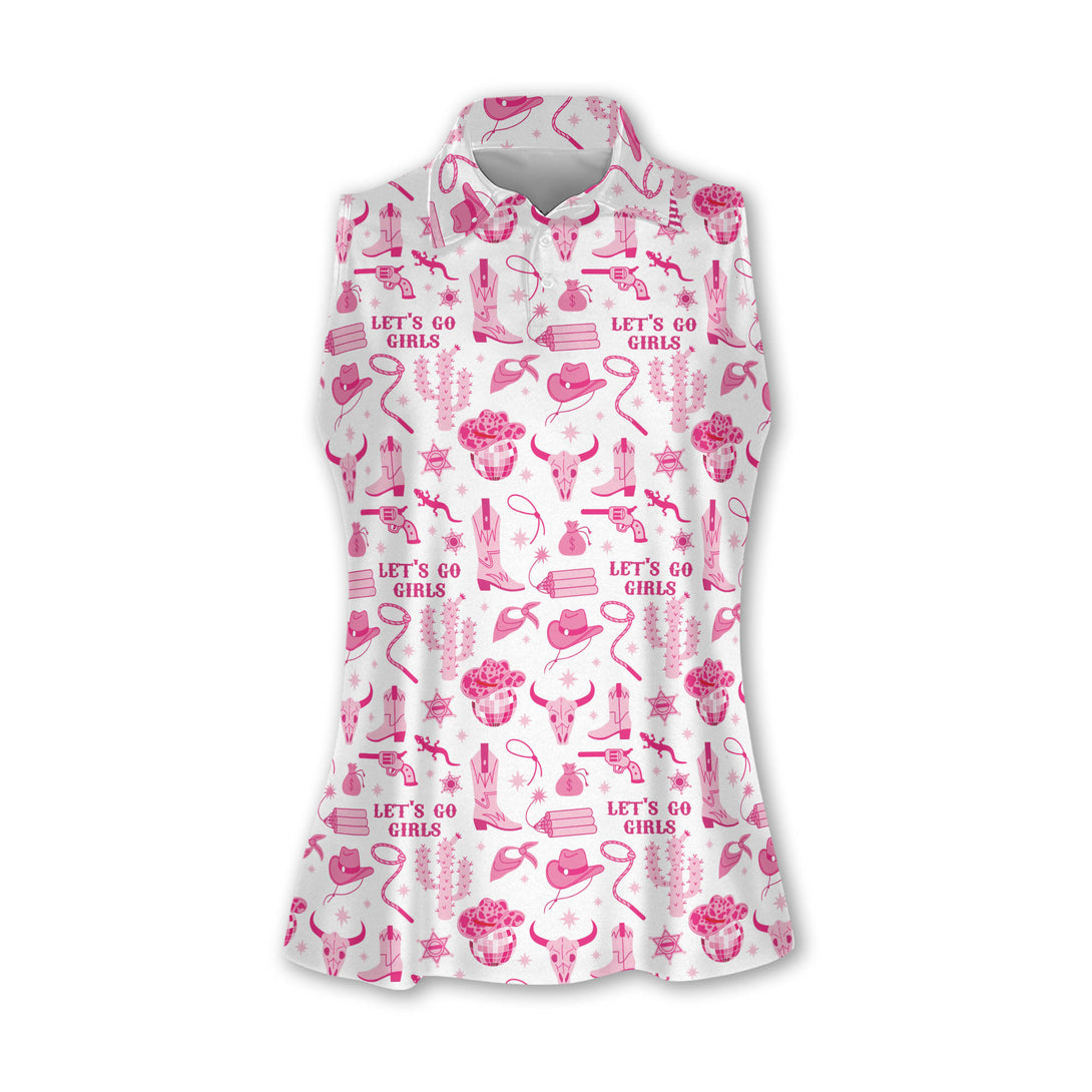 Western Let's Go Girl Golf Sleeveless Shirts Women, Cowgirl Pink Golf Shirts GE0010