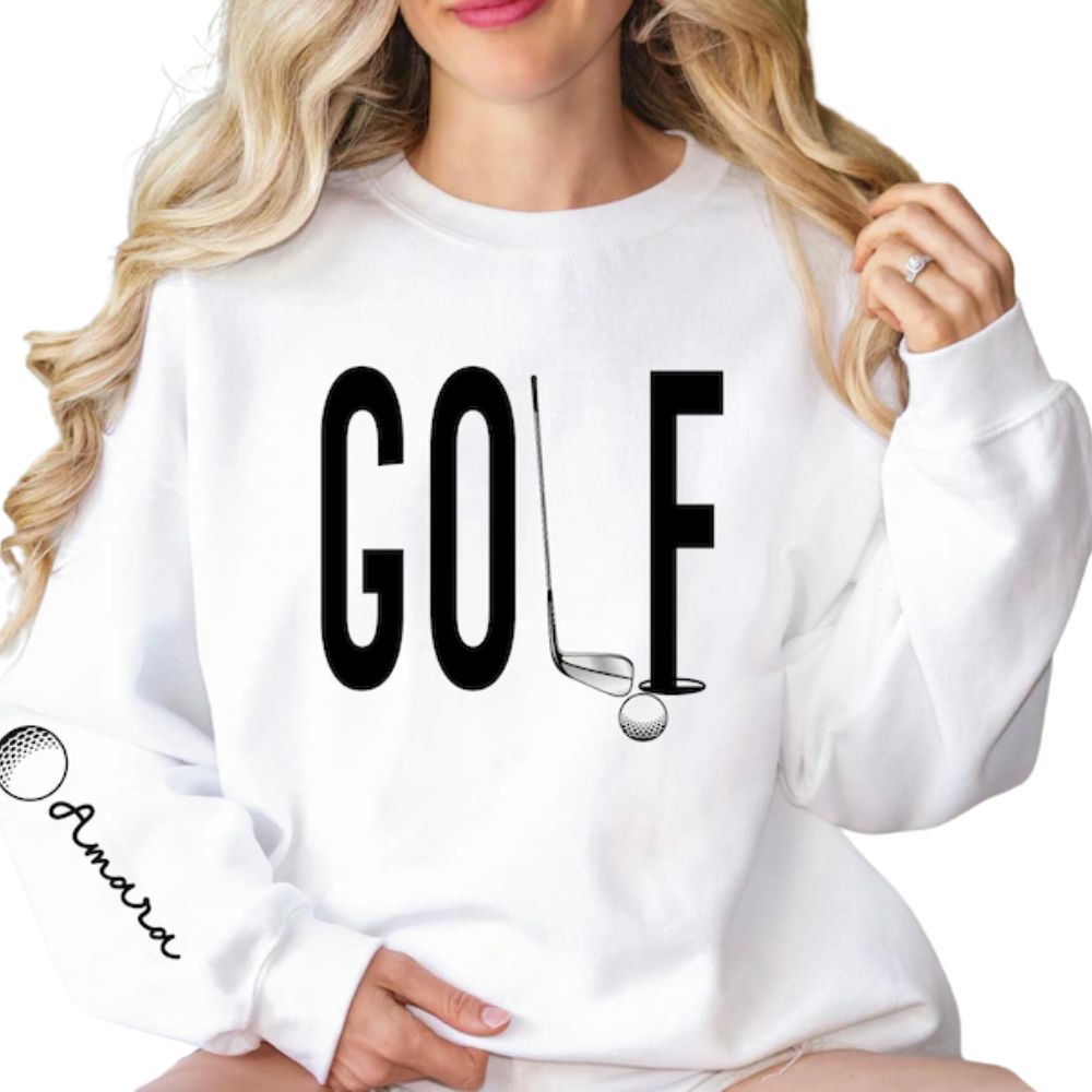 Women's Custom Name Grey Golf Sweatshirt, Custom Golf Sweatshirt Womens GE0135