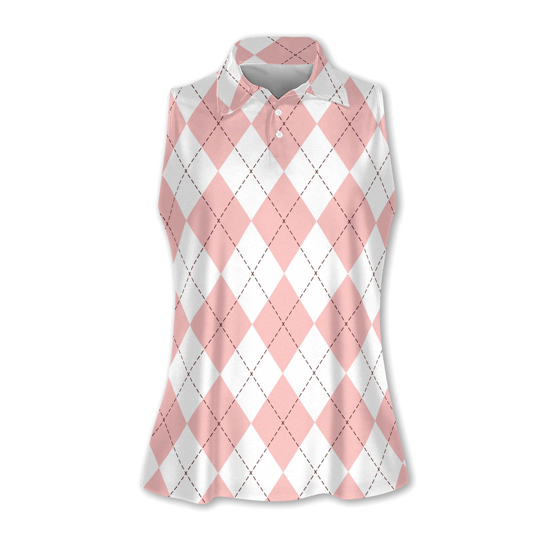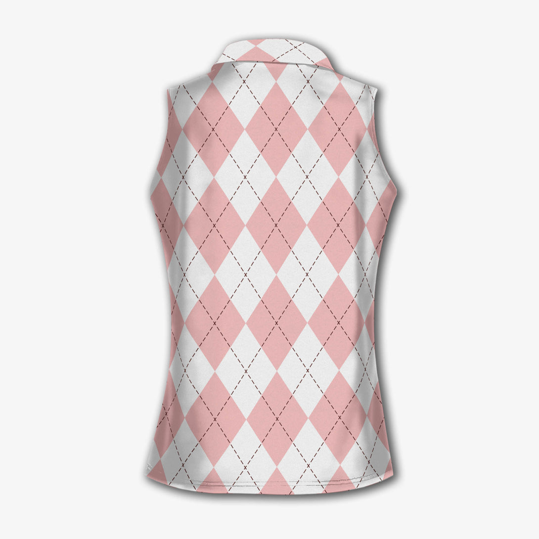 Women's Pink Argyle Sleeveless Golf Shirt, Womens Argyle Golf Shirt GZ0026