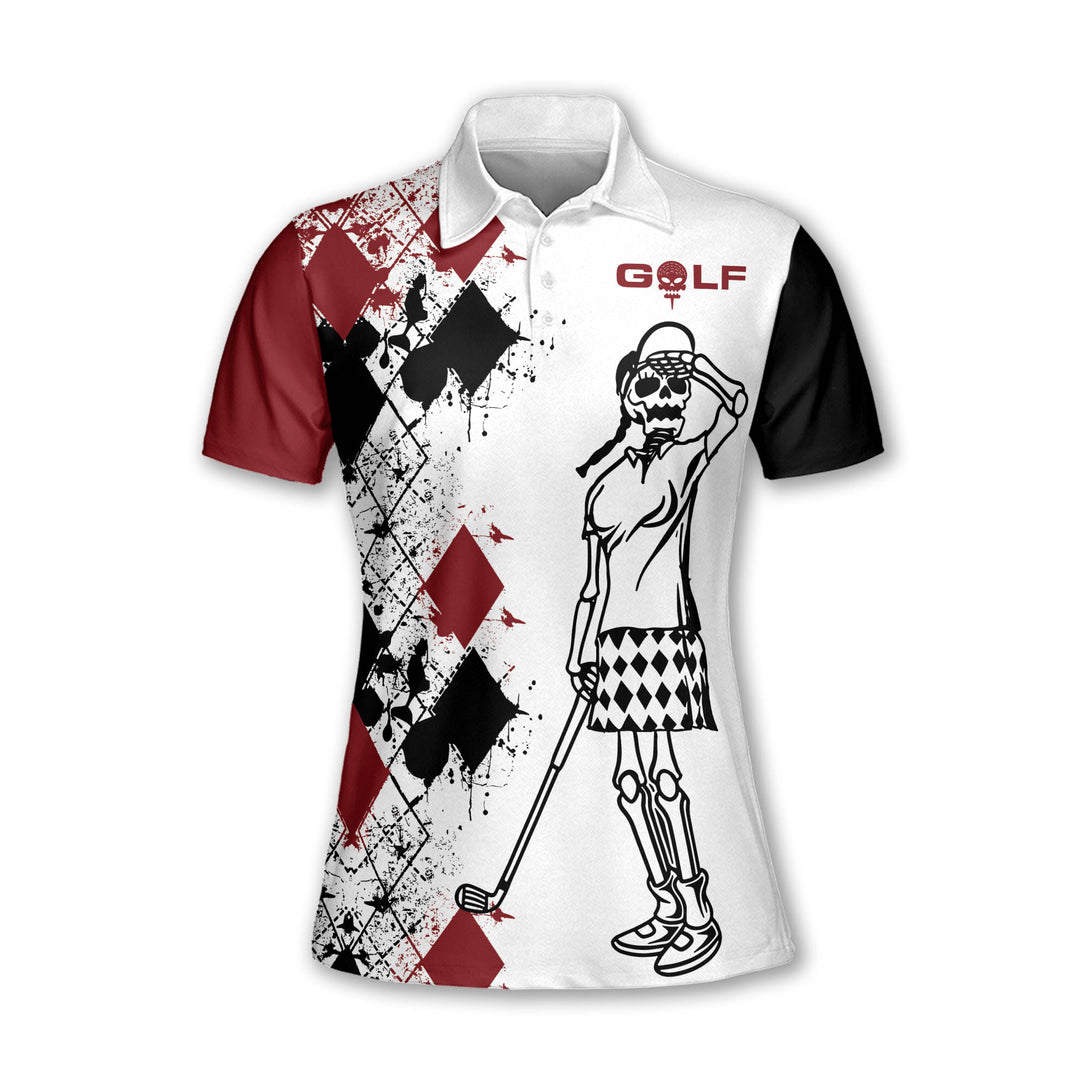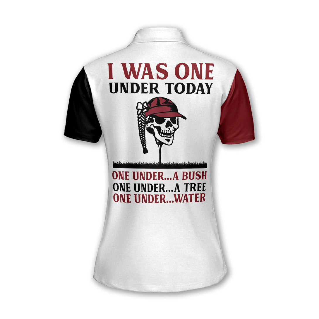 I Was One Under Today One Under A Bush One Under A Tree One Under Water Womens Skull Golf Polo Shirts, Funny Skull Golf Shirt For Women GZ0025