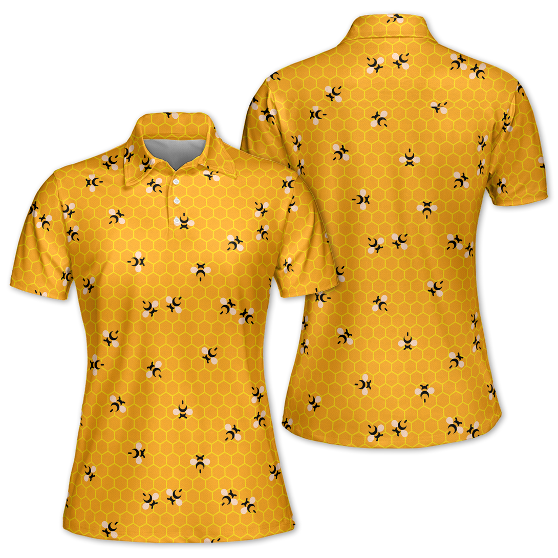 Bee Honeycomb Yellow Golf Polo Shirt For Ladies, Bee Golf Shirt Women's GZ0038