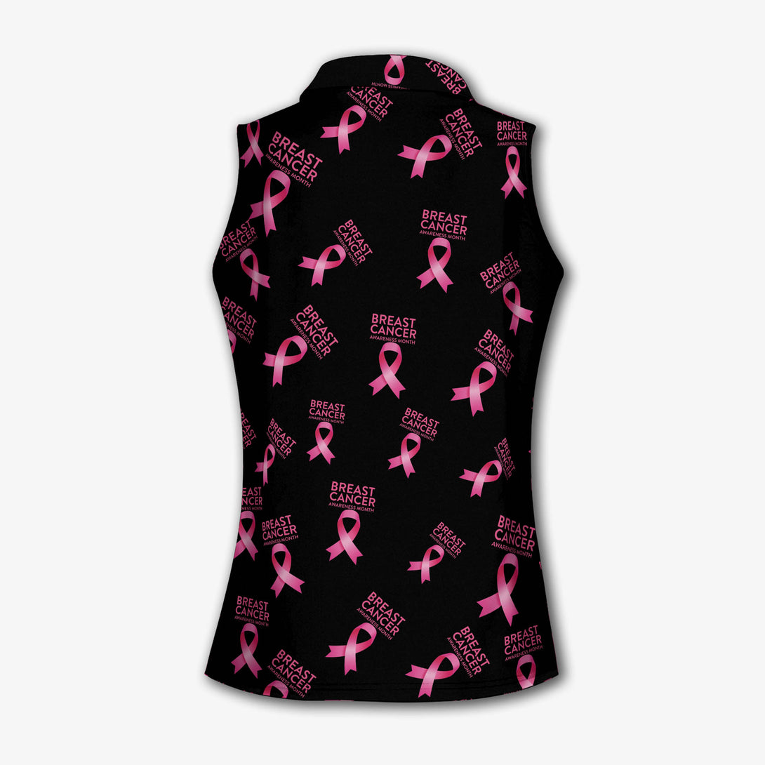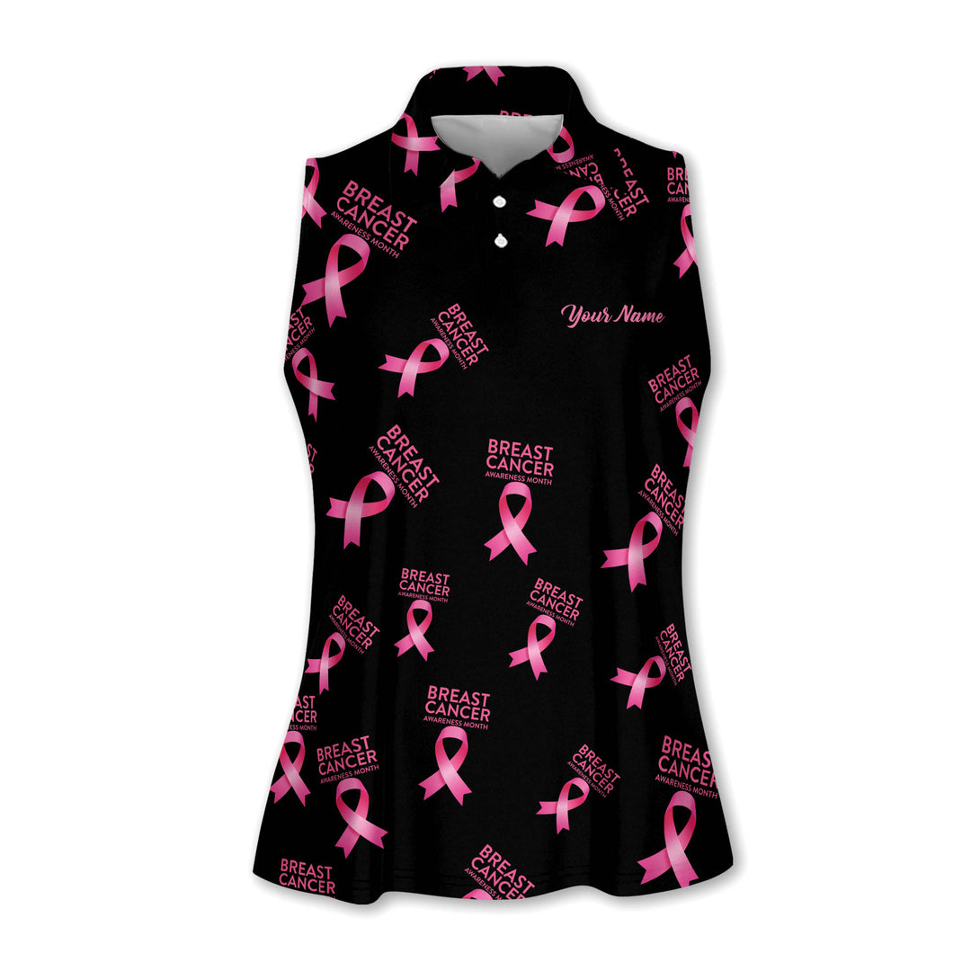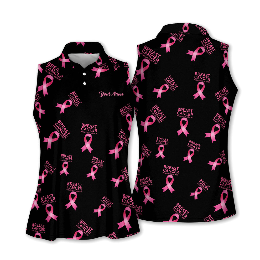 Custom Breast Cancer Awareness Pink Ribbon Womens Sleeveless Golf Shirts, Custom Breast Cancer Golf Shirt GY3111