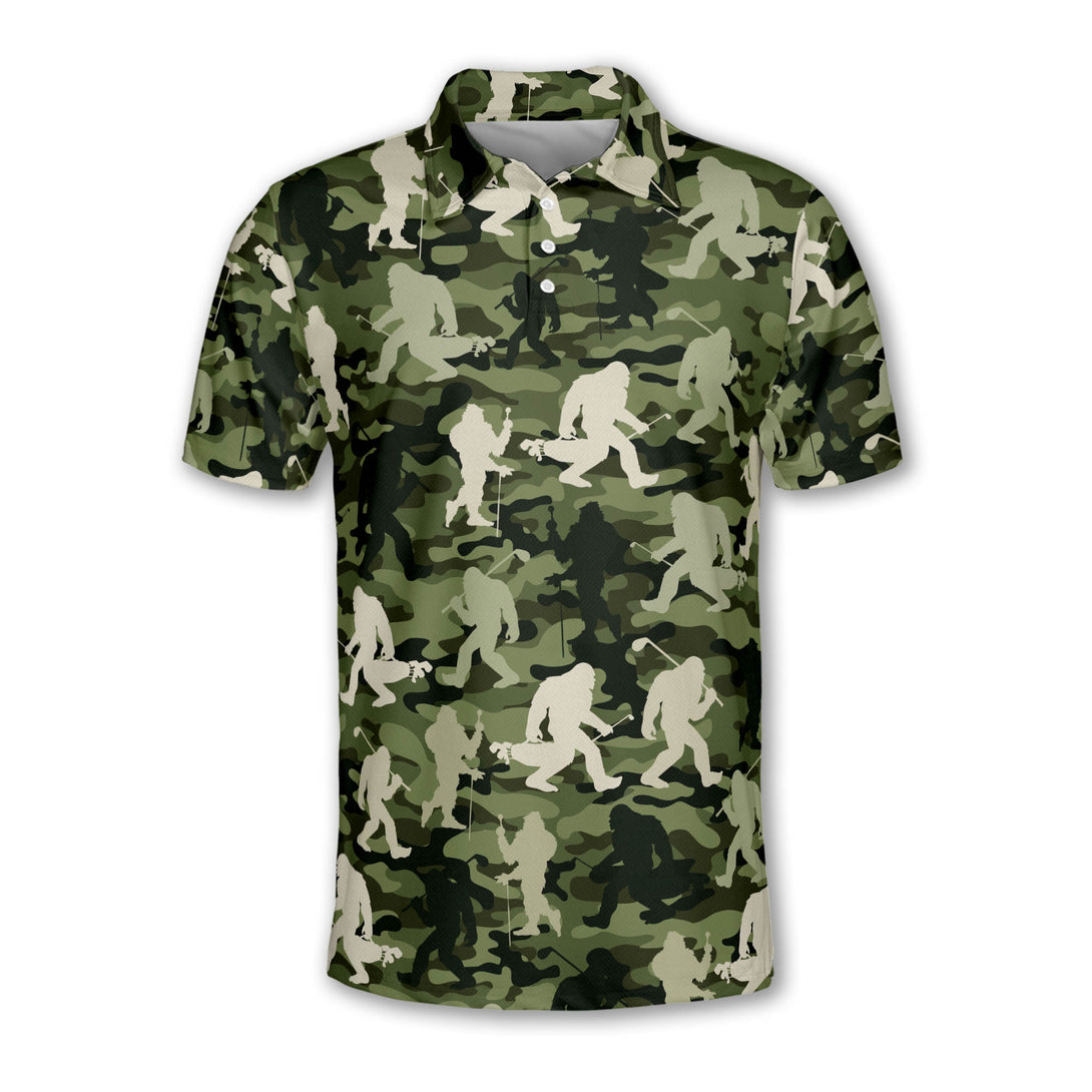 Camo Bigfoot Sasquatch Men's Golf Polo Shirt, Bigfoot Golf Shirt Mens GZ0067