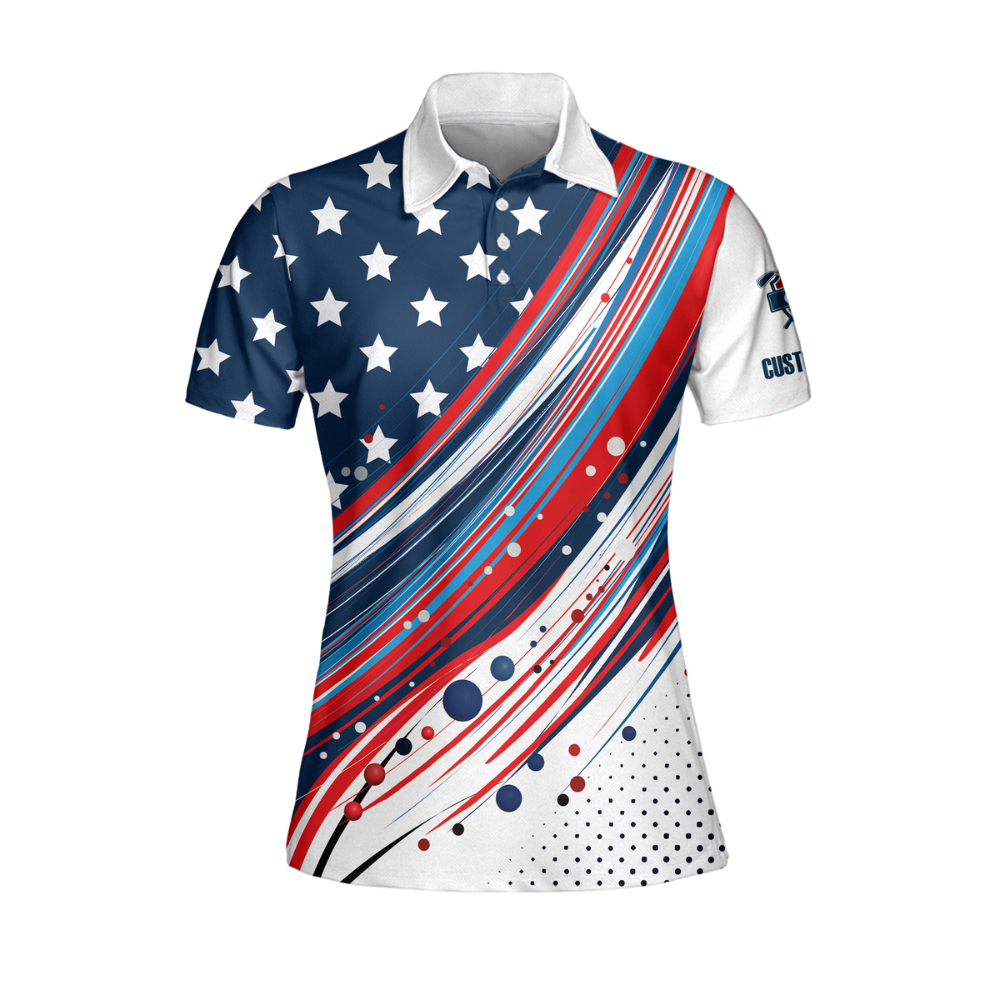 Custom American Flag Golf Polo Shirts Women, Custom Women's Patriotic Golf Shirts GW0072