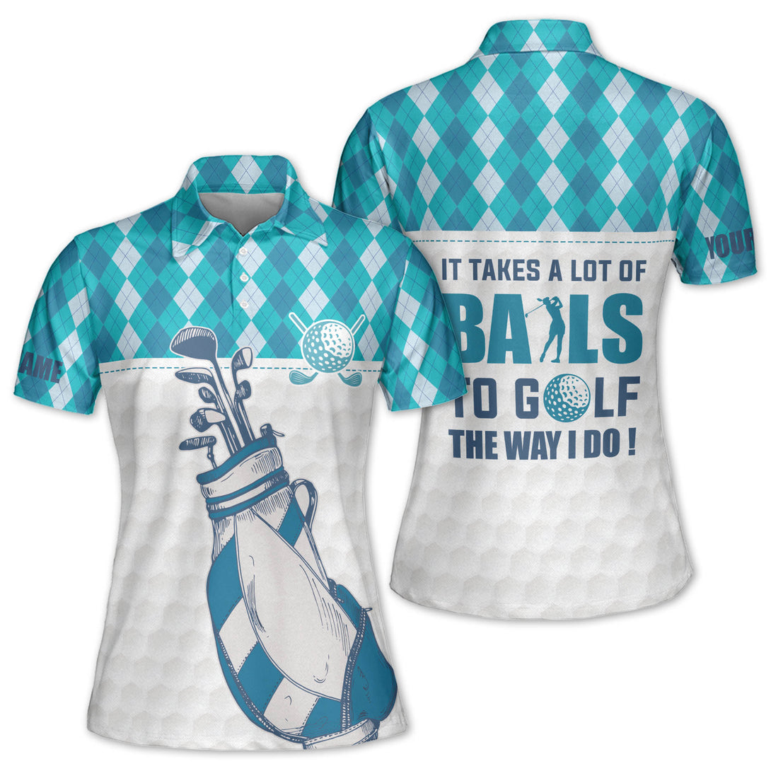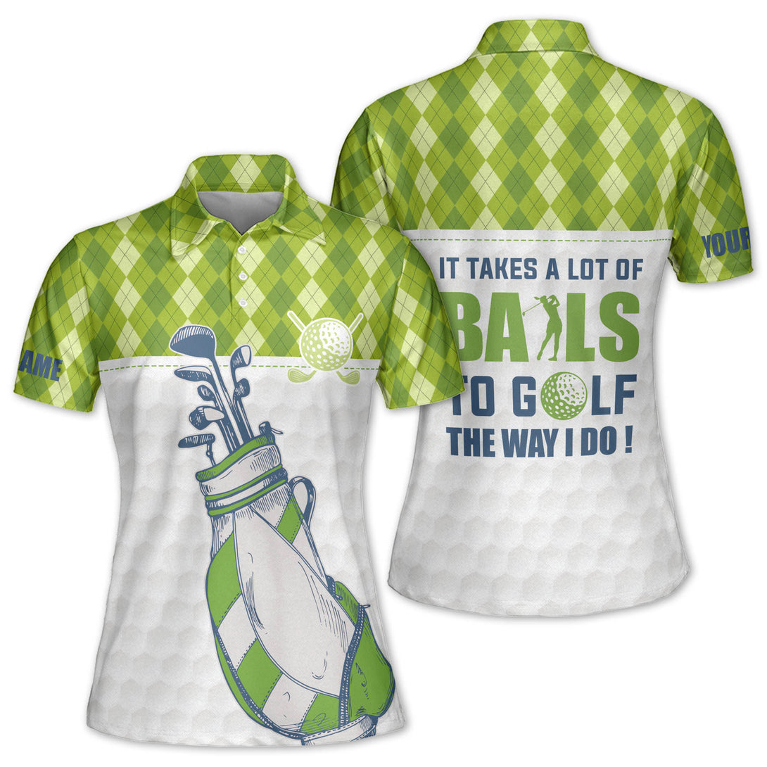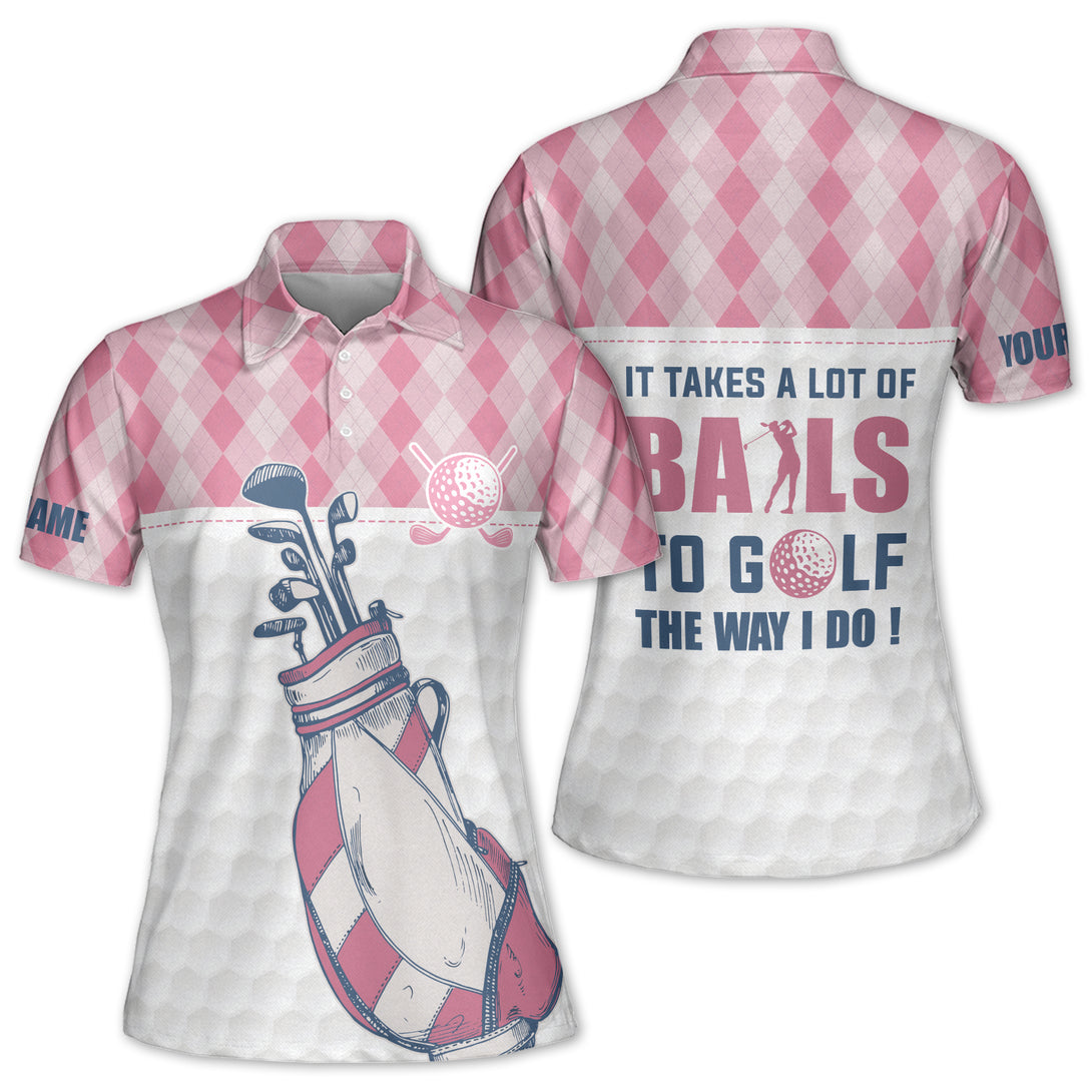 Custom It Takes A Lot Of Balls To Golf The Way I Do Golf Polo Shirts Women, Custom Fun Womens Golf Shirts GE0056