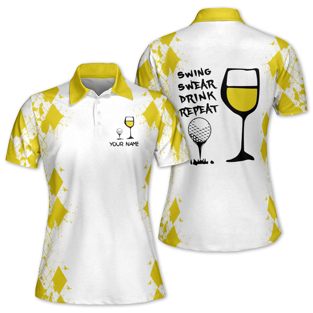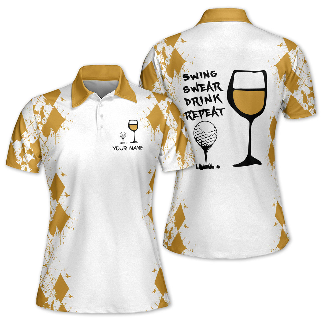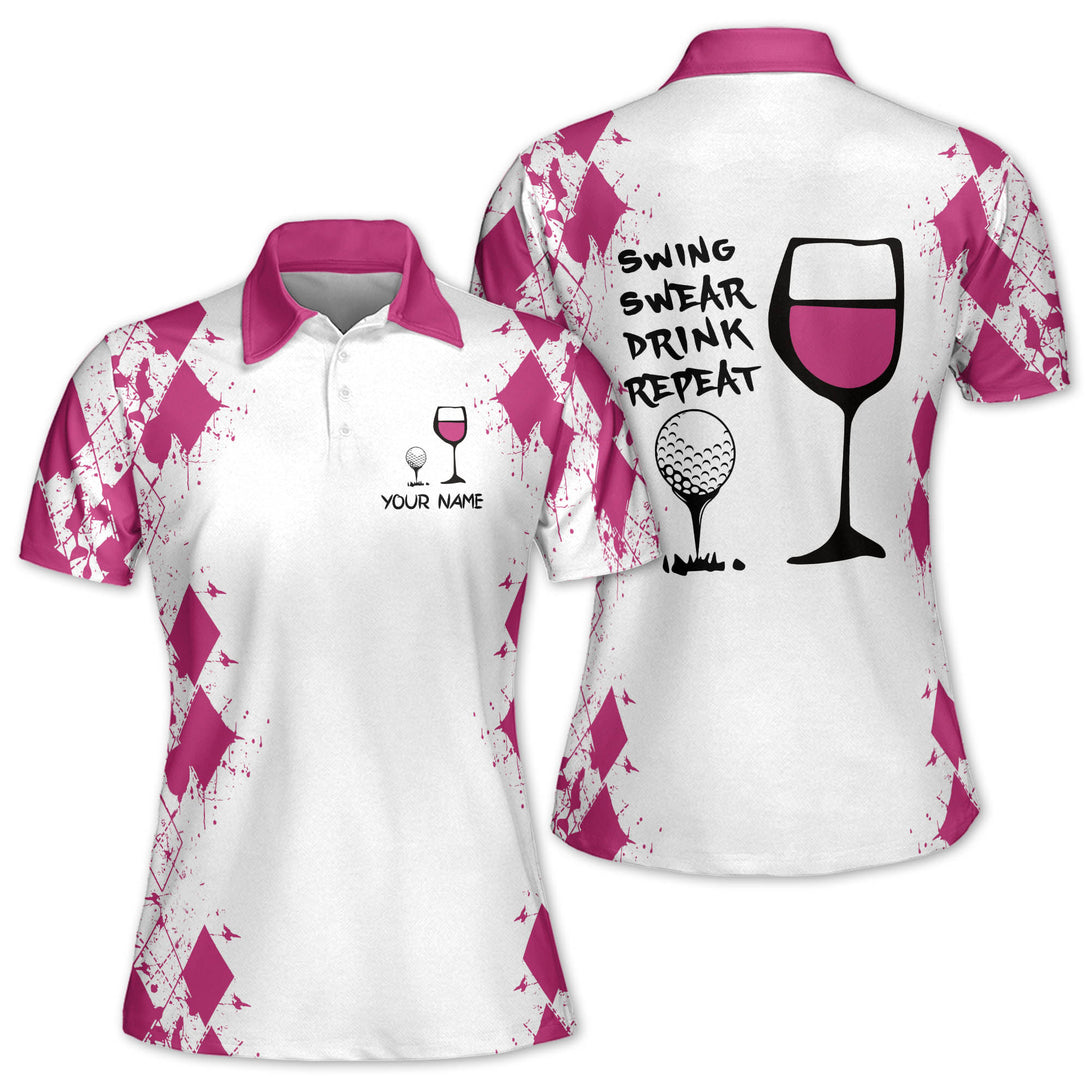 Swing Swear Drink Repeat Custom Women's Golf Polo Shirts, Custom Funny Golf Shirts Women GE0003