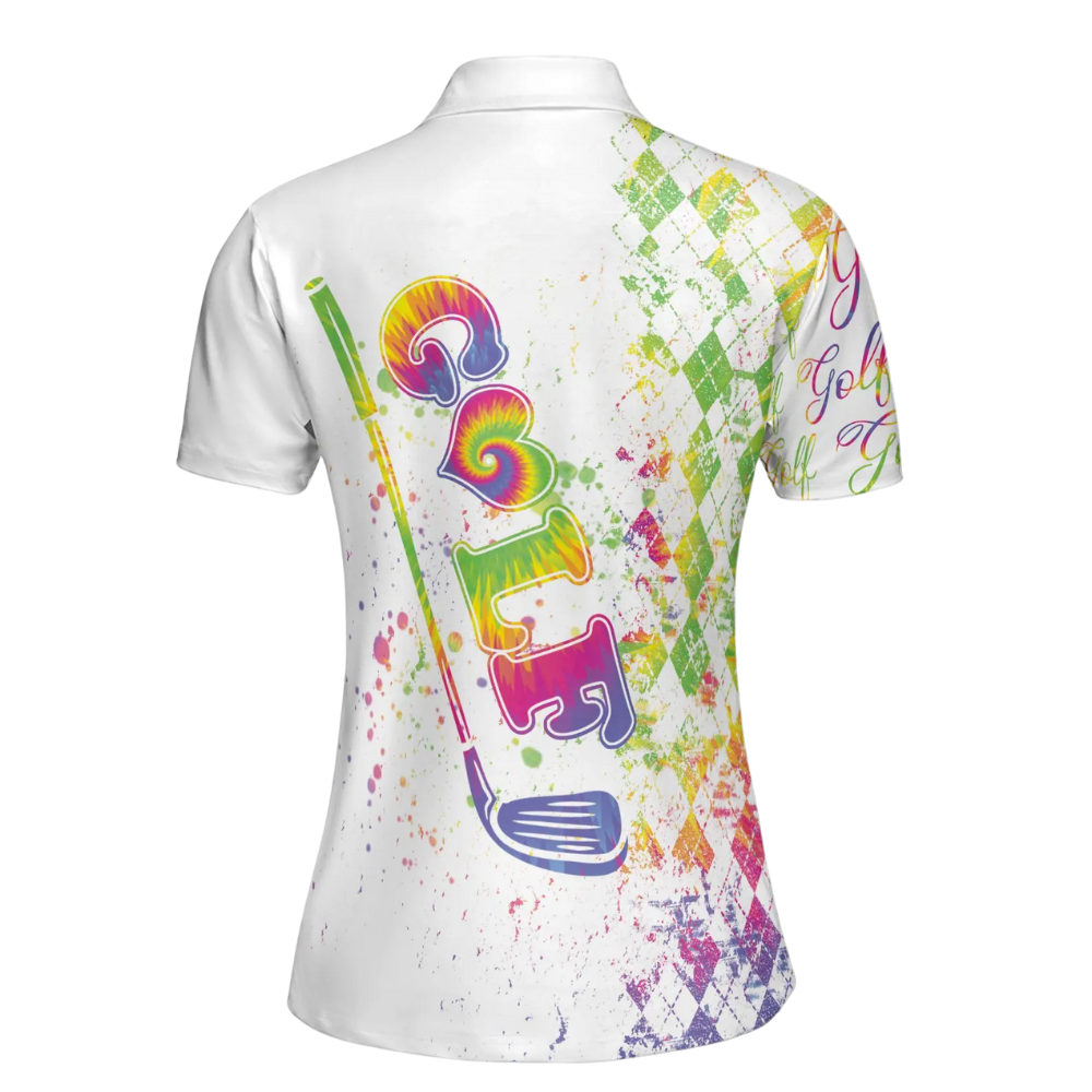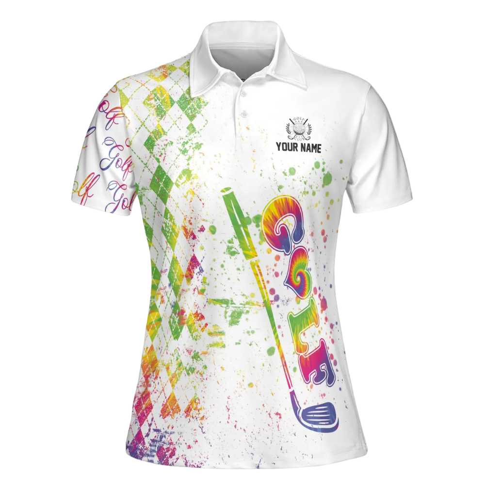 Custom Tie Dye Rainbow Golf Polo Shirt Womens, Custom Womens Tie Dye Argyle Golf Shirts GE0100