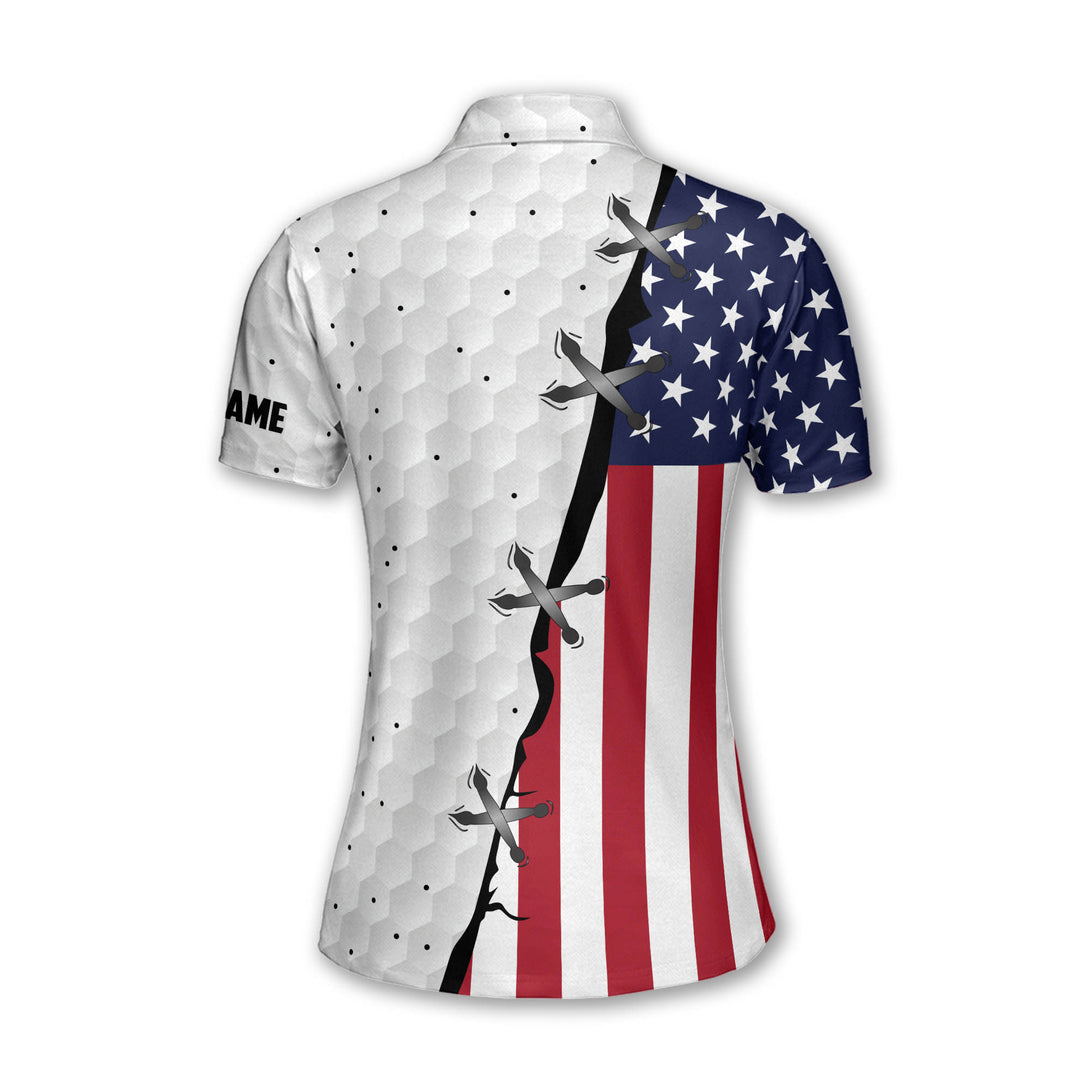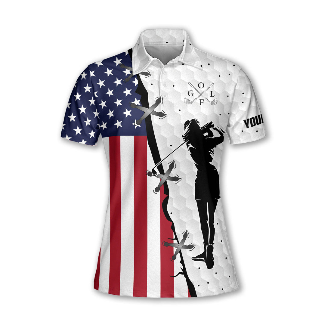 Custom Women's American Flag Golf Polo Shirts, Custom Patriotic Golf Shirts For Women GE0045