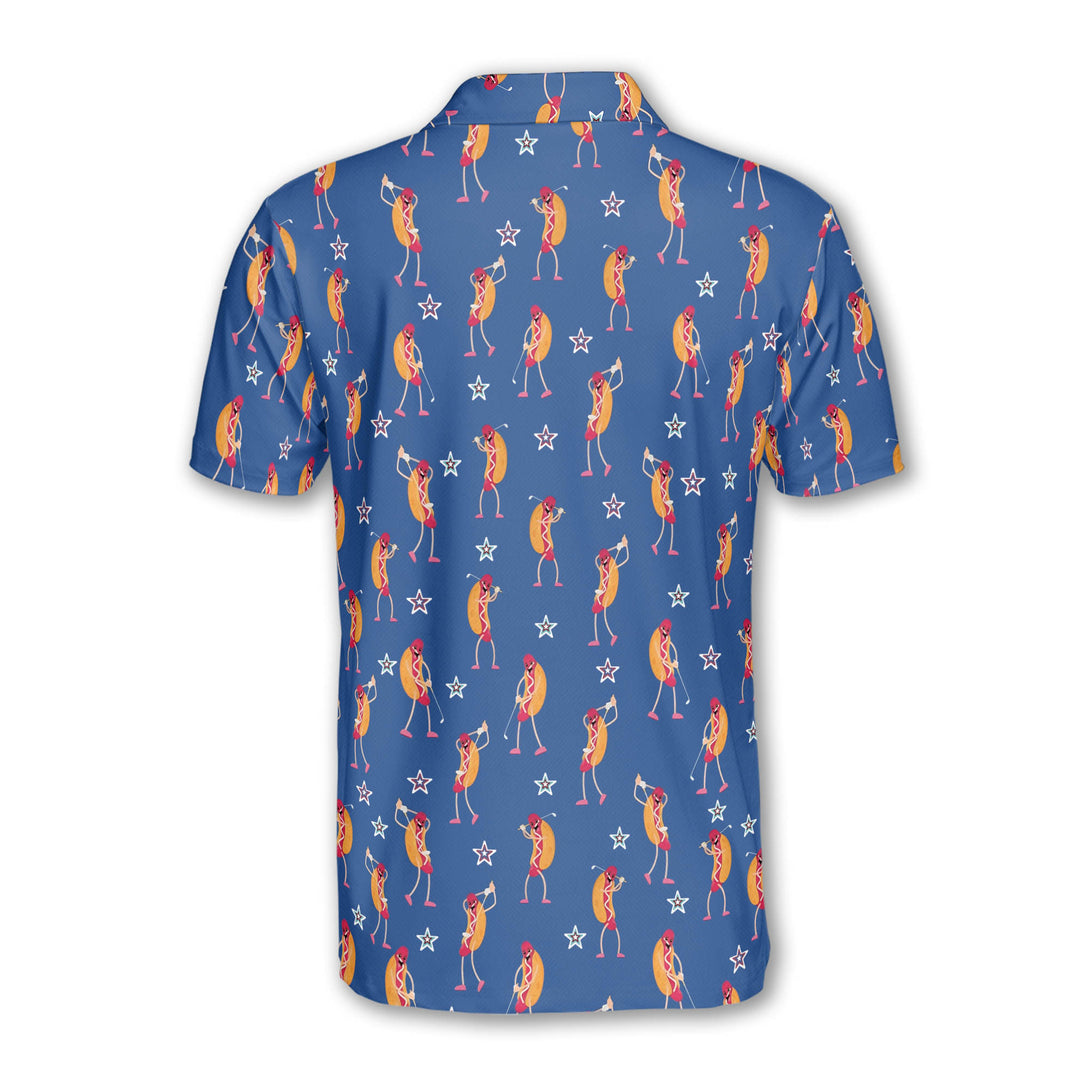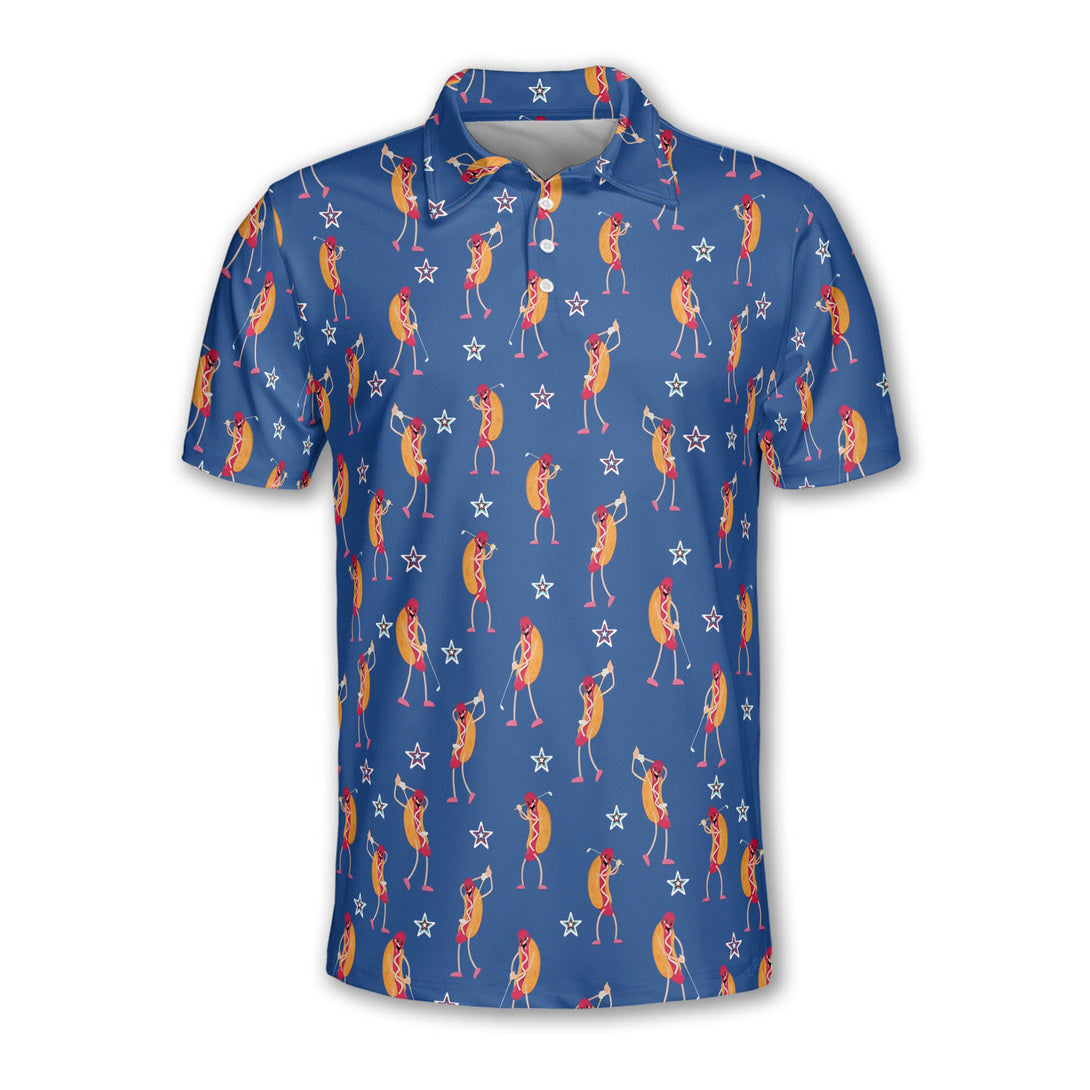Fun Hot Dog Men's Blue Golf Polos Shirt, Hot Dog Golf Shirt Men GE0098