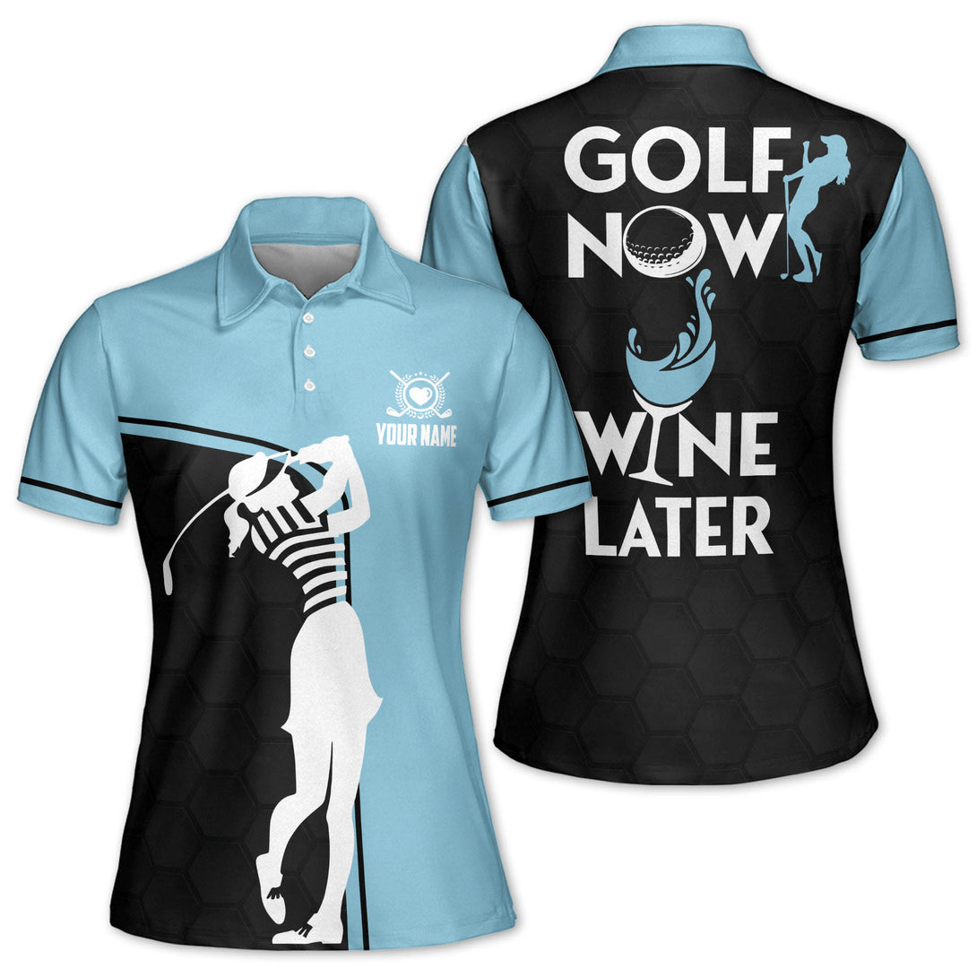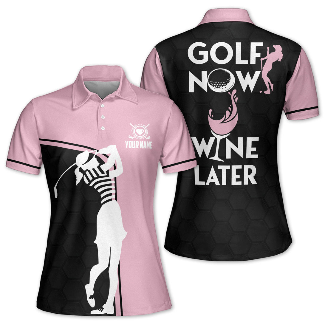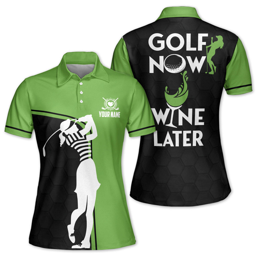 Golf Now Wine Later Custom Ladies Golf Polo Shirts, Custom Funny Golf Shirts For Women GE0006