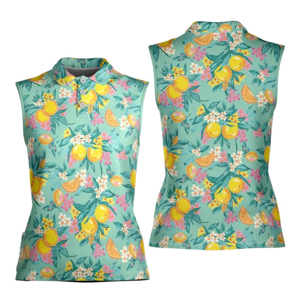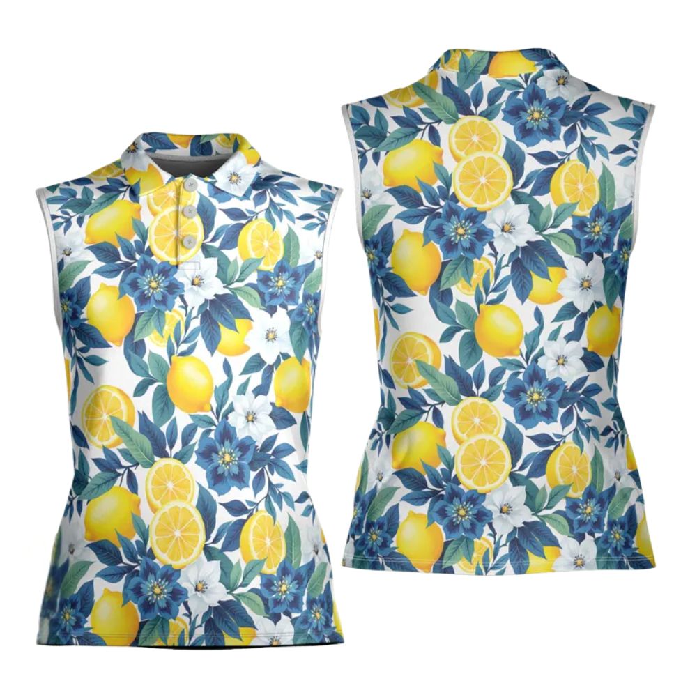Lemon Floral Sleeveless Golf Shirt For Women, Lemon Golf Shirts For Ladies GE0167