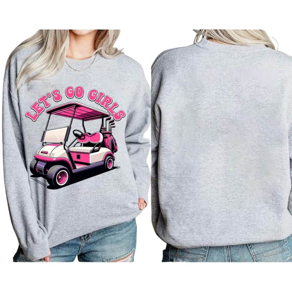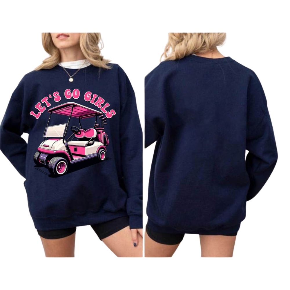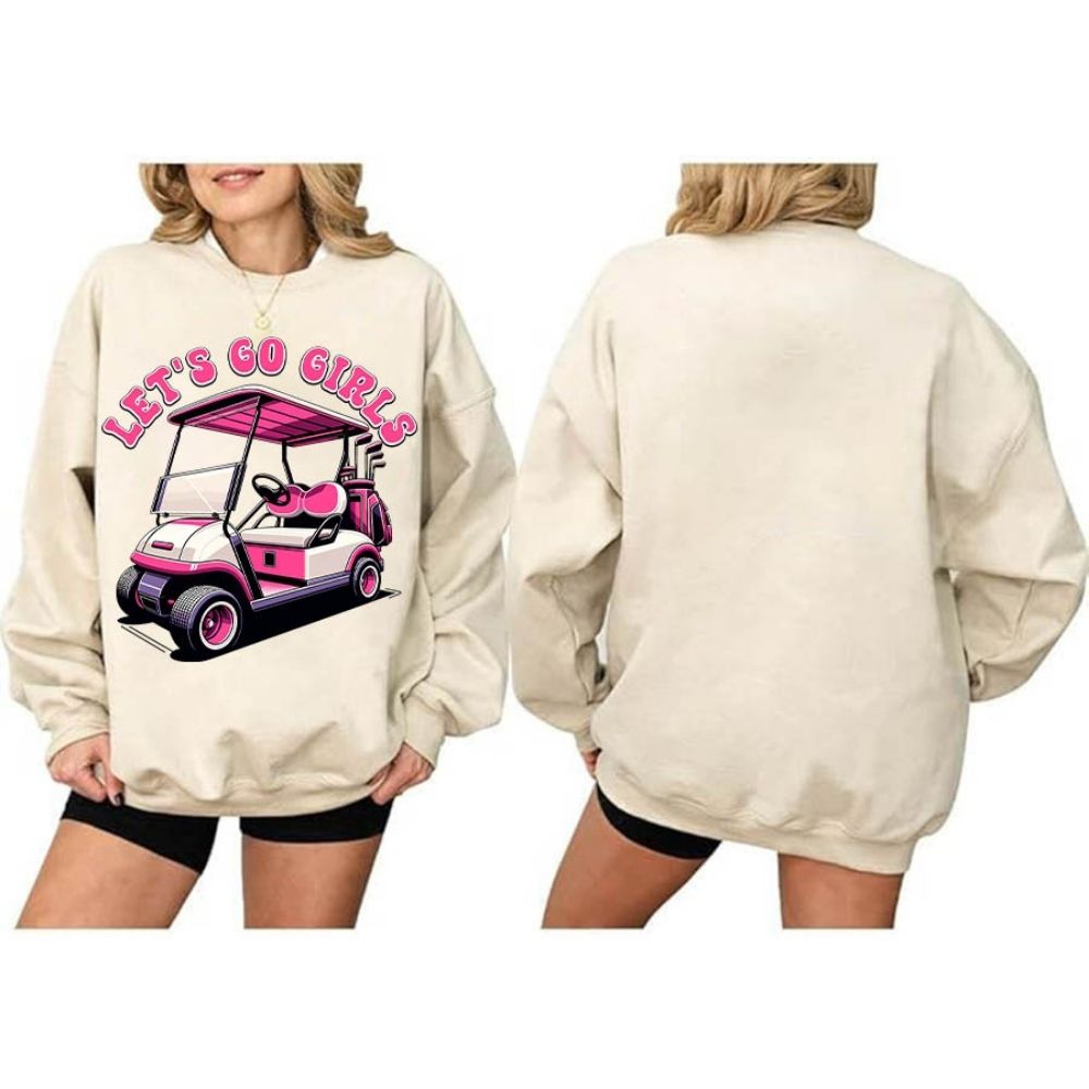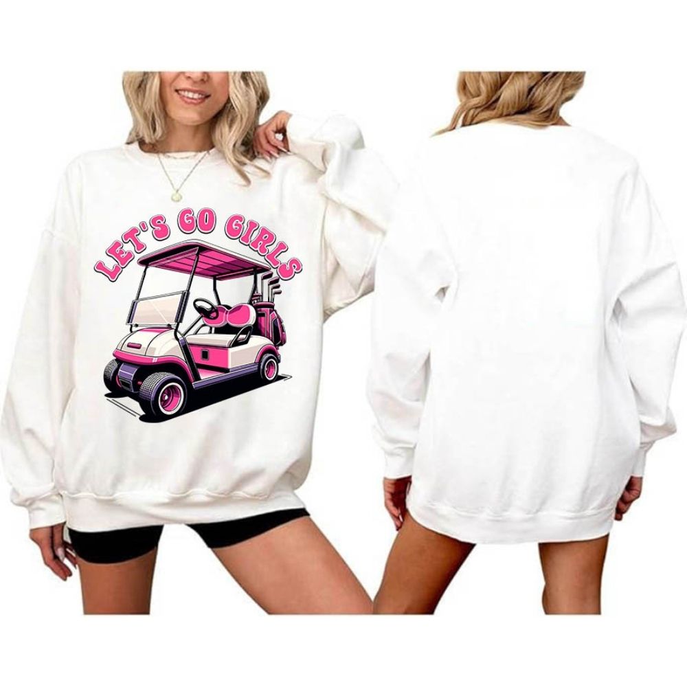 Let's Go Girls Pink Golf Cart Sweatshirt For Women, Funny Golf Sweatshirt Women's GE0121