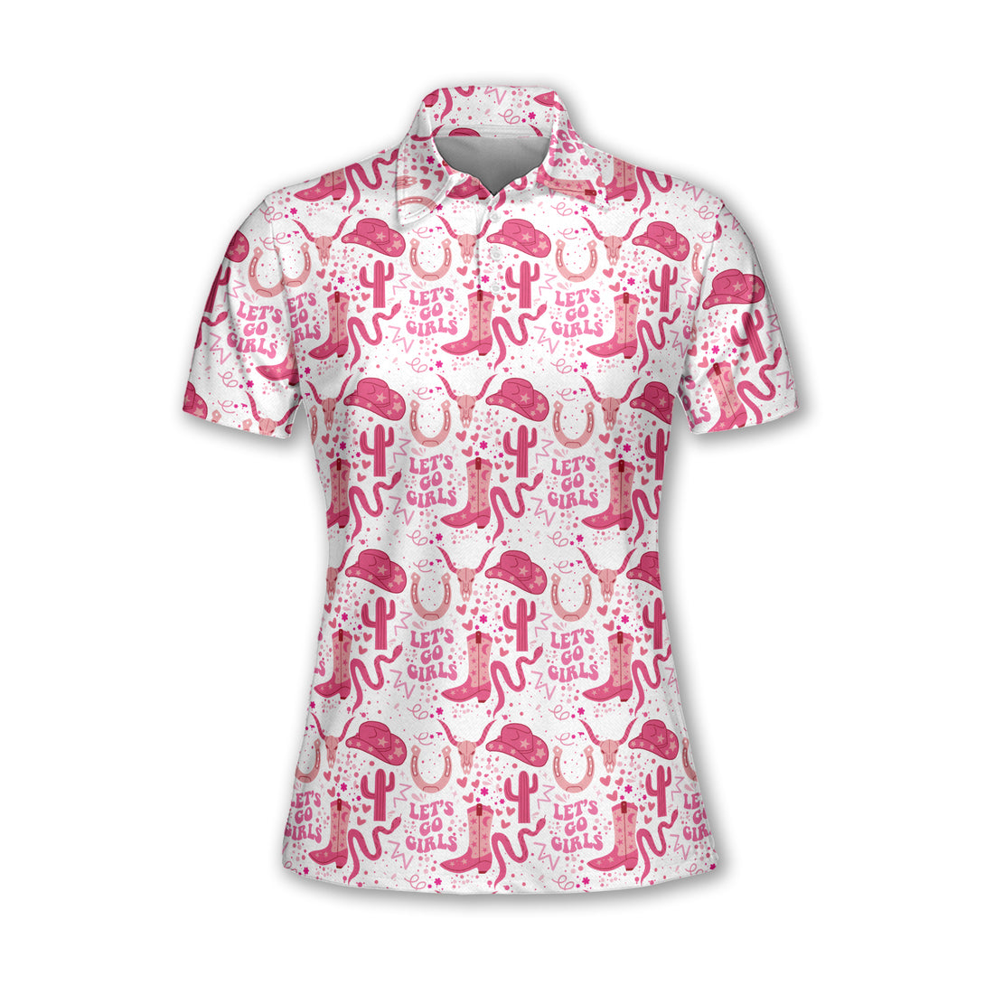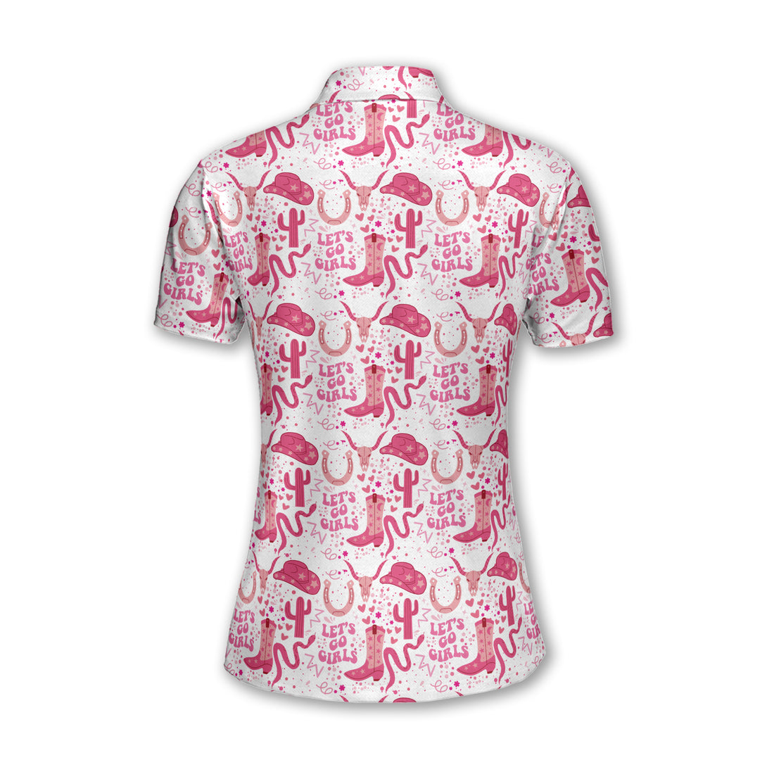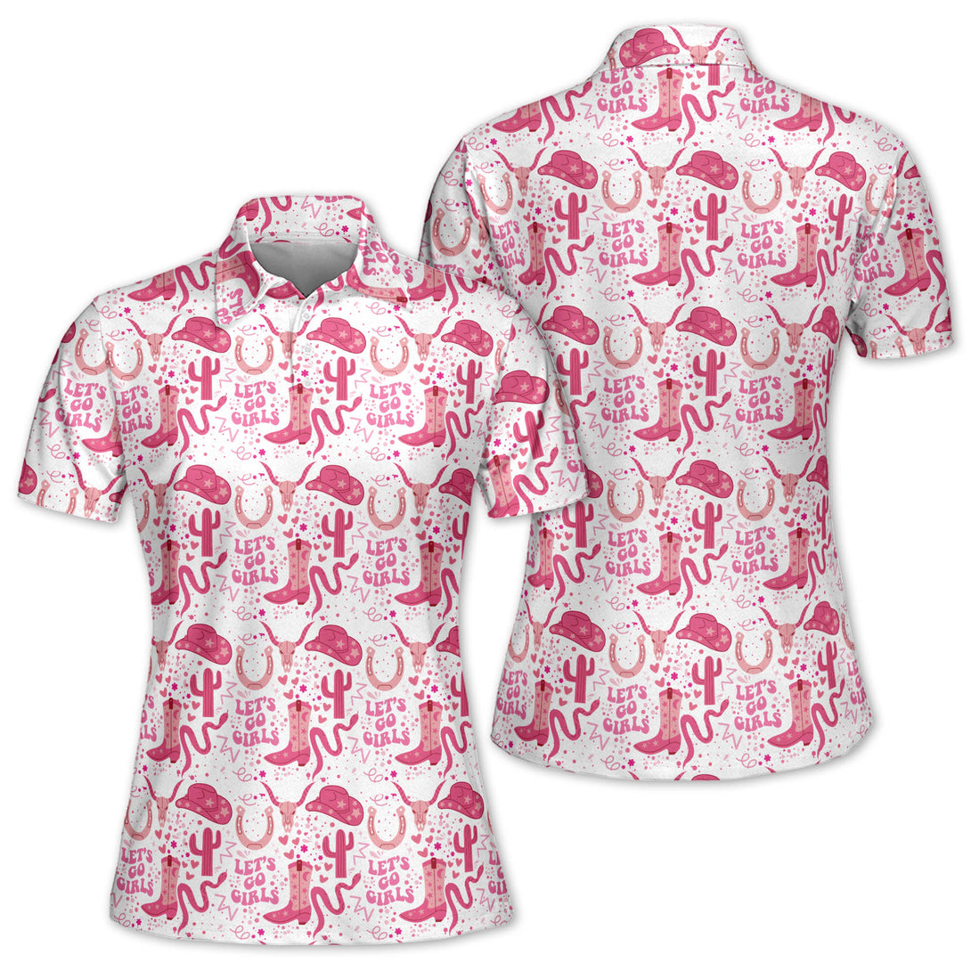 Let's Go Girls Western Ladies Golf Polo Shirts, Western Pink Golf Shirts Women, Cowgirl Golf Shirts GE0004